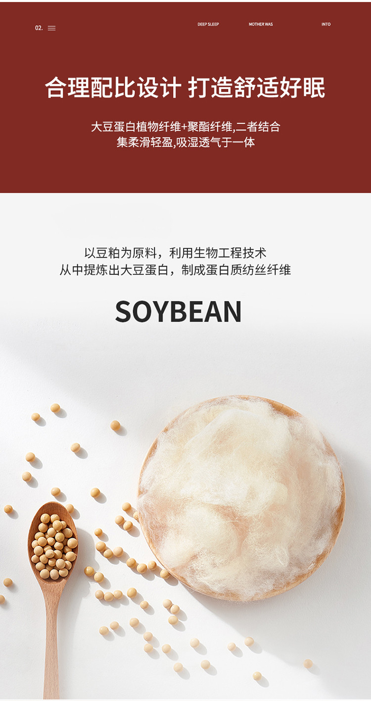 • 填充纤维种类: 大豆蛋白改性聚酯纤维