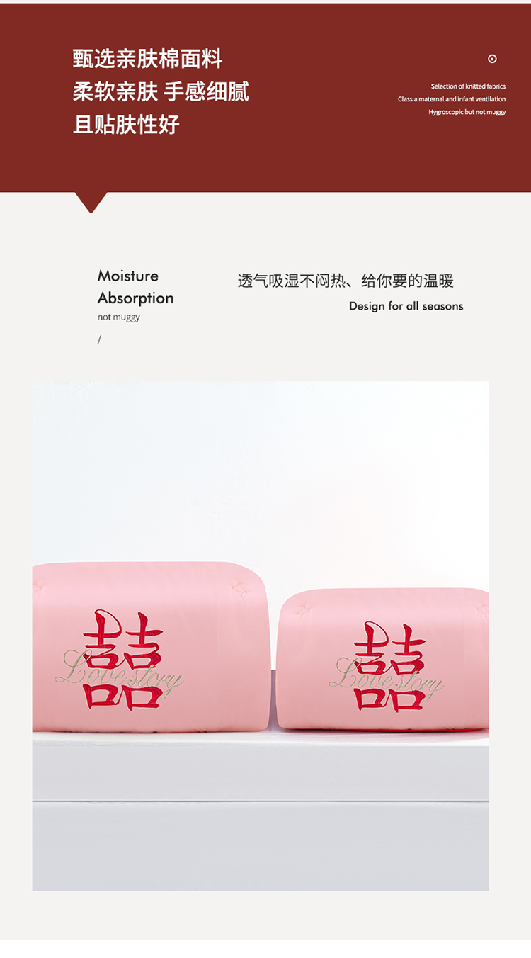 2025新款水洗磨毛婚庆大豆子母被 双喜子母被(粉+粉)