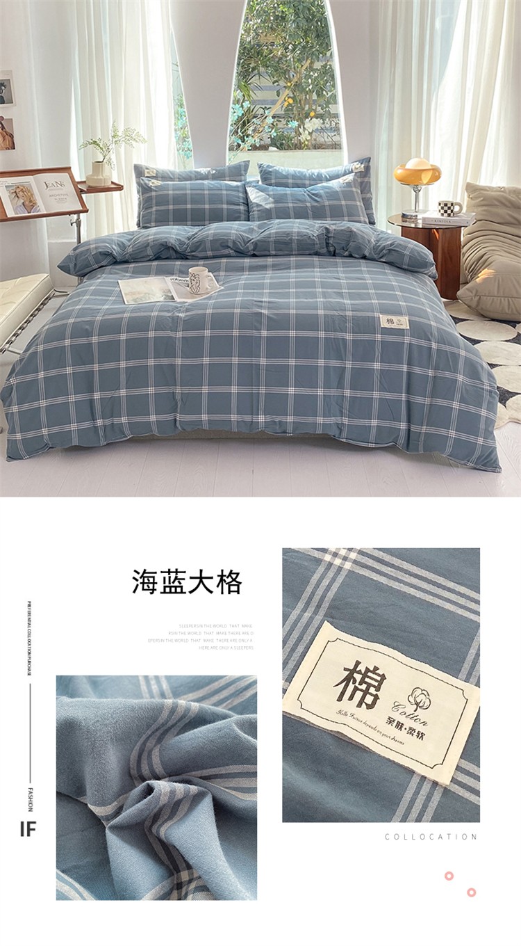 商品名称:云家2023新款全棉纯棉水洗棉色织被套单件被罩 海蓝大格