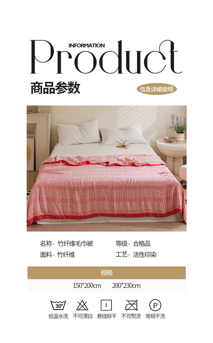 商品名称:雯雨家纺 2023新款竹纤维毛巾被 百灵鸟-红色