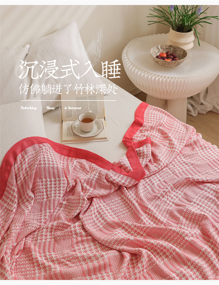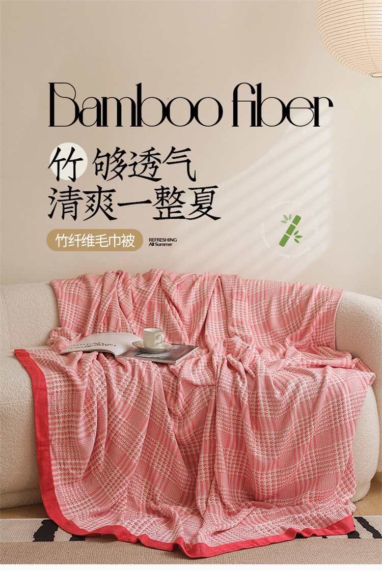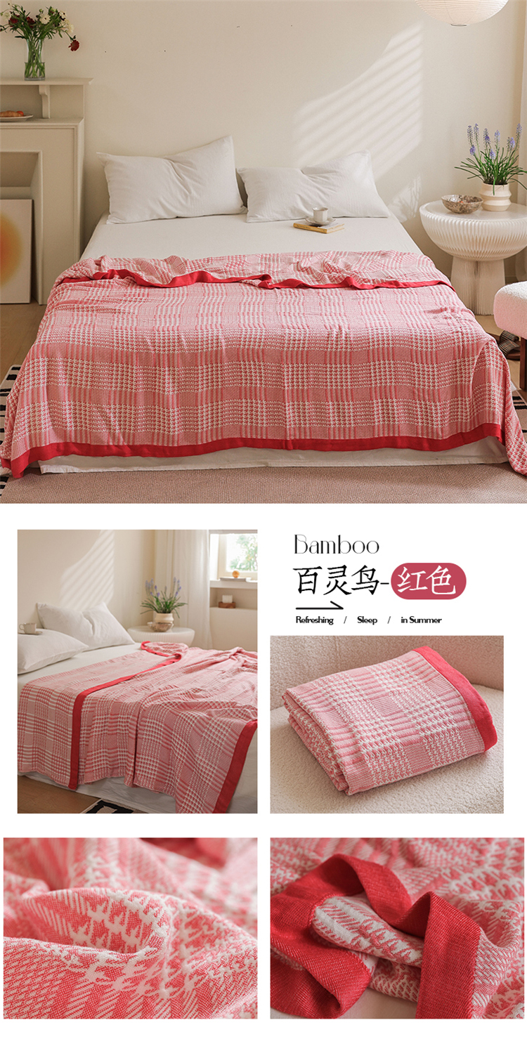 雯雨家纺 2023新款竹纤维毛巾被 百灵鸟-红色