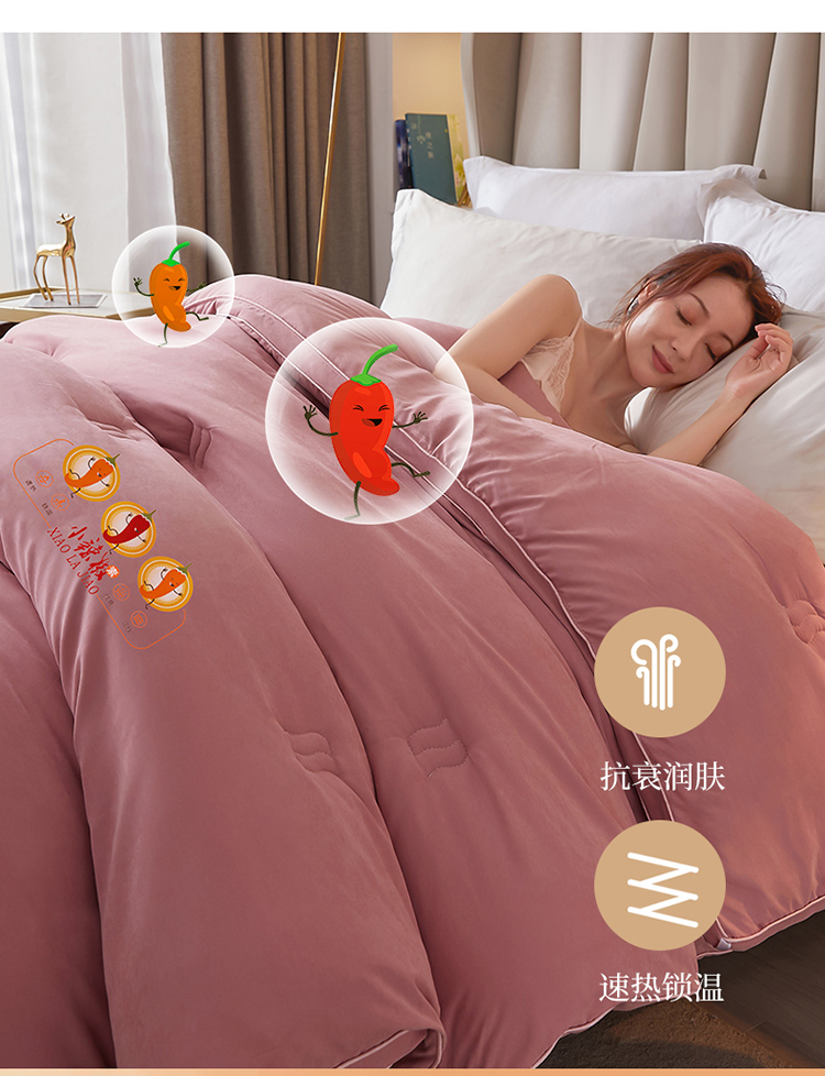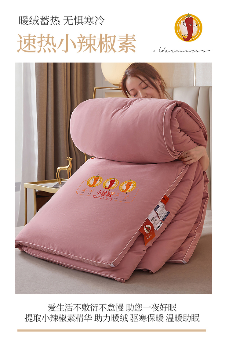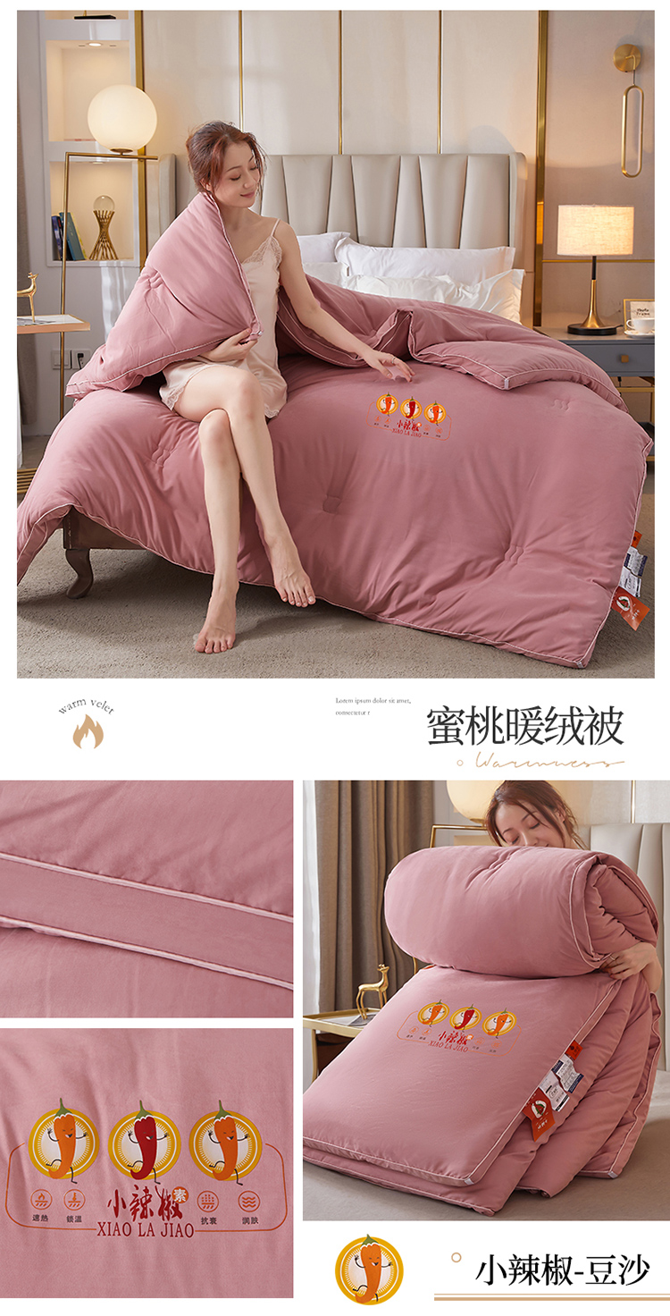 • 91家纺网 家纺一手货源 找家纺 33家纺 2023新款A类小辣椒蜜桃暖绒春秋被冬被速暖被子被芯 香叶红