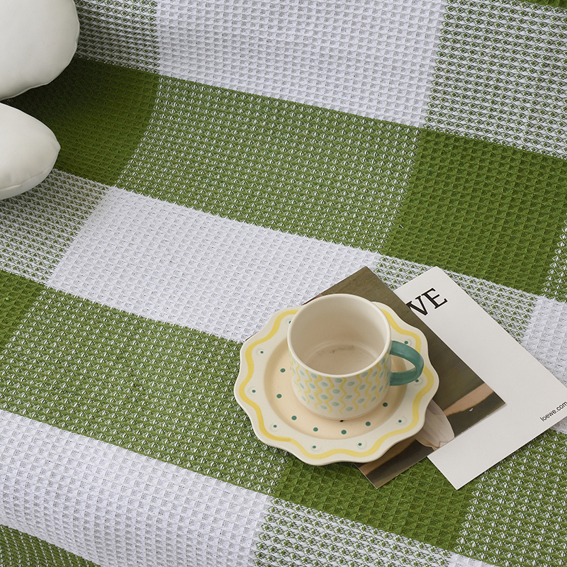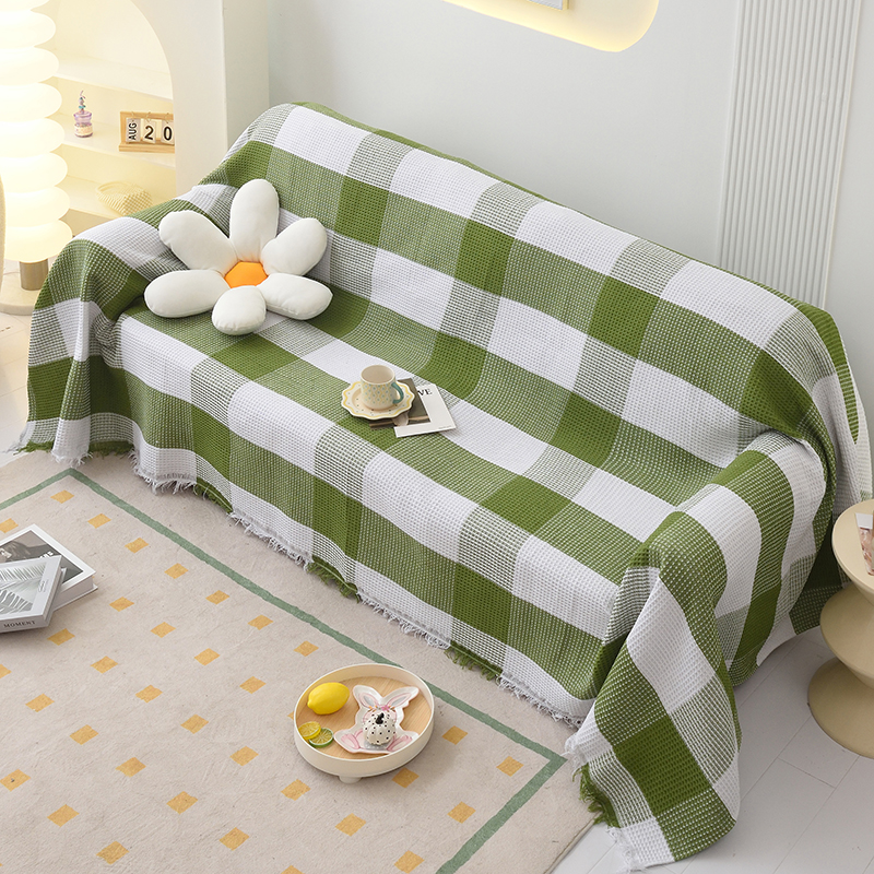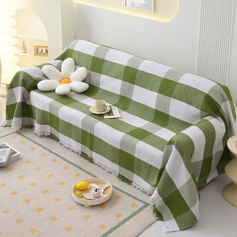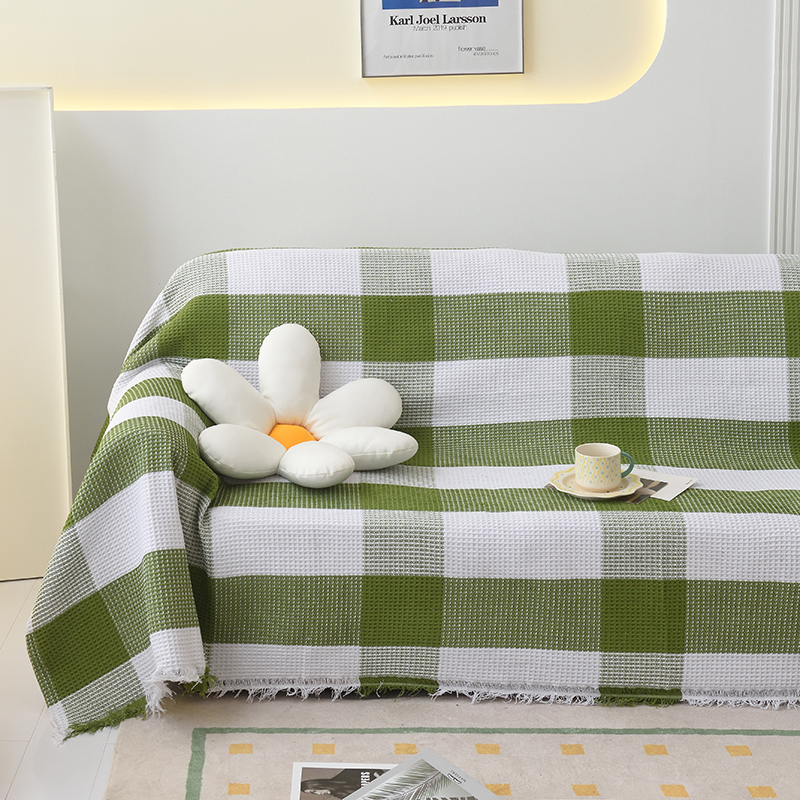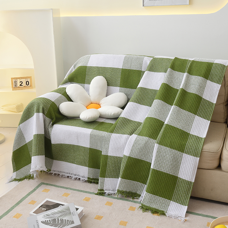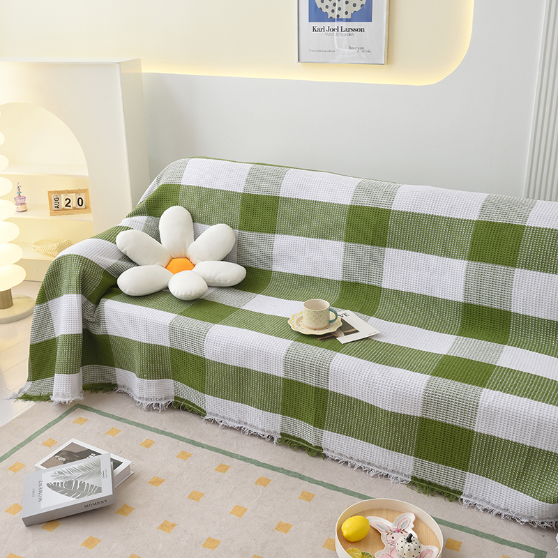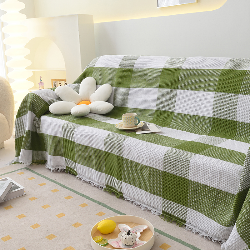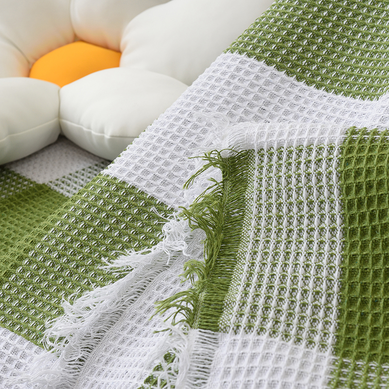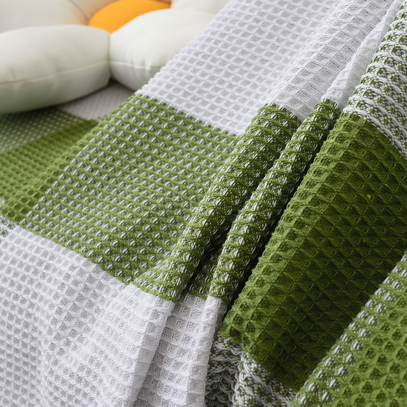 当前位置: 91家纺网 > 商品网购 > 居家布艺 > 坐垫/椅垫/沙发垫 > 沙发垫 > 启博家纺 2023爆款针织棉线沙发巾 绿白格