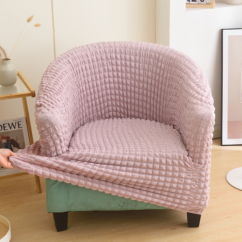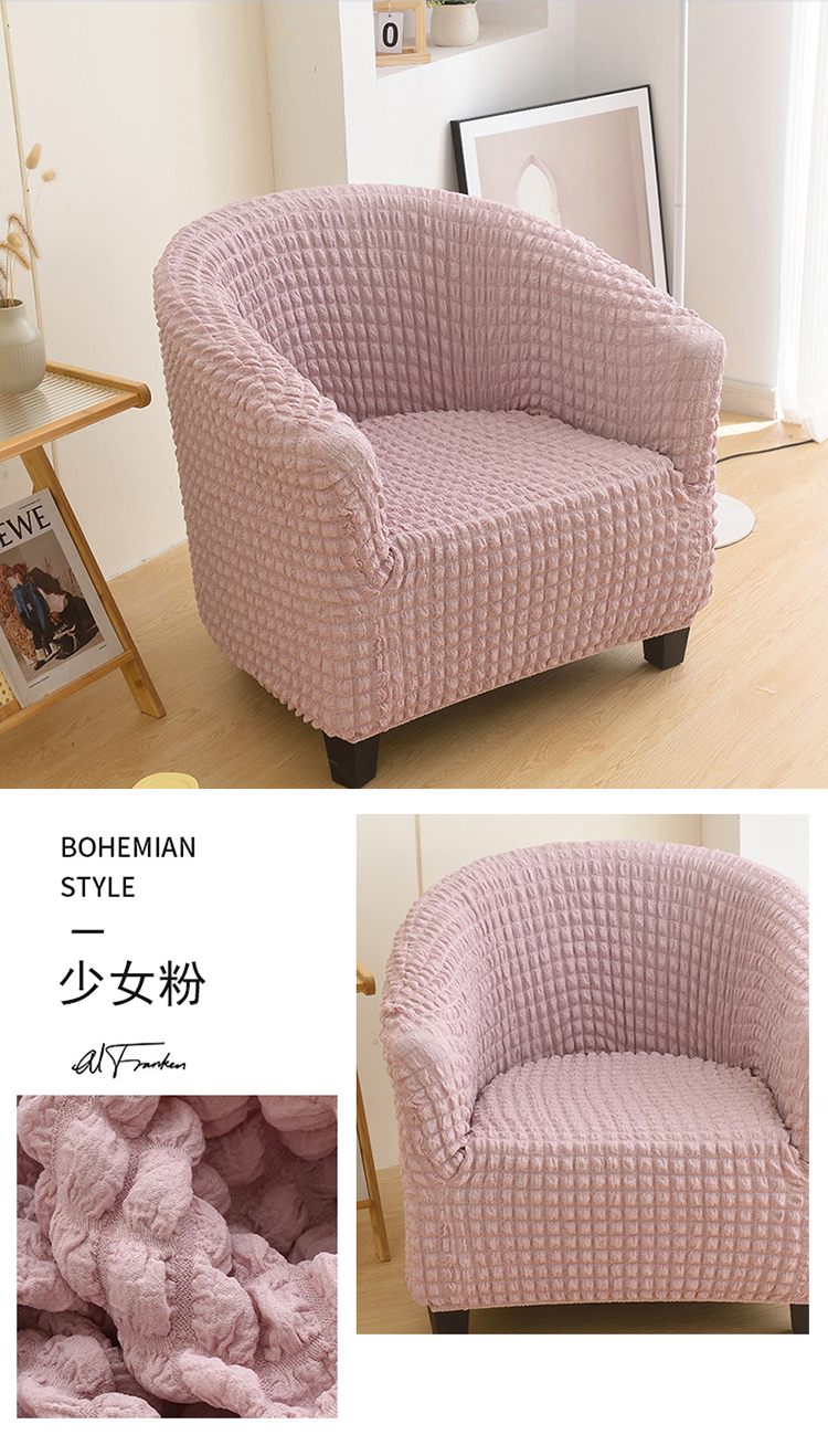 启博家纺 2023新款泡泡纱弹力半圆形沙发套 少女粉