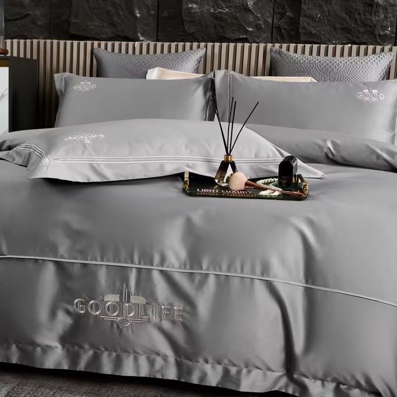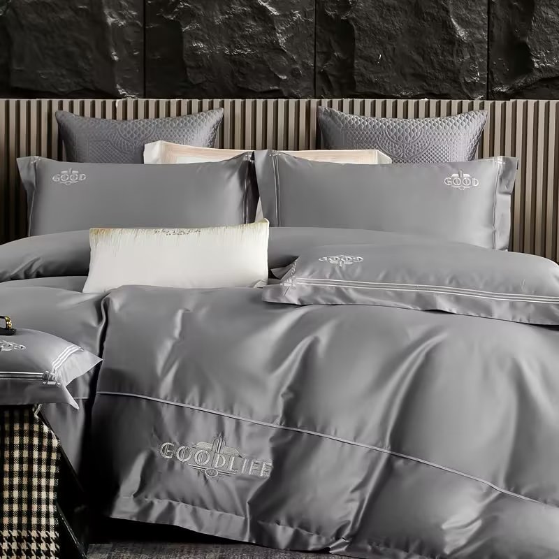 U品汇 2023新品100支60s长绒棉宽边刺绣花纯棉全棉四件套直播 雷利斯-时尚灰