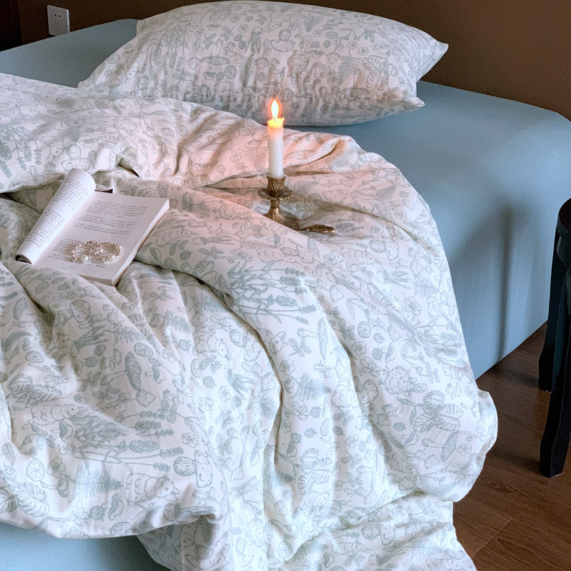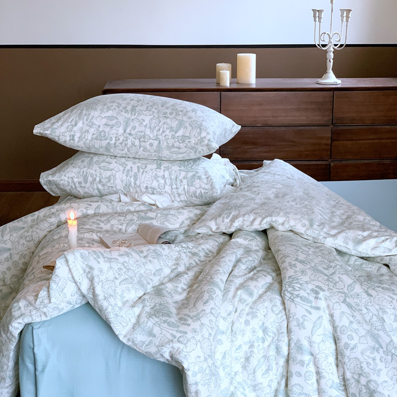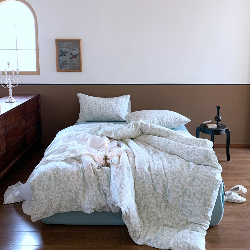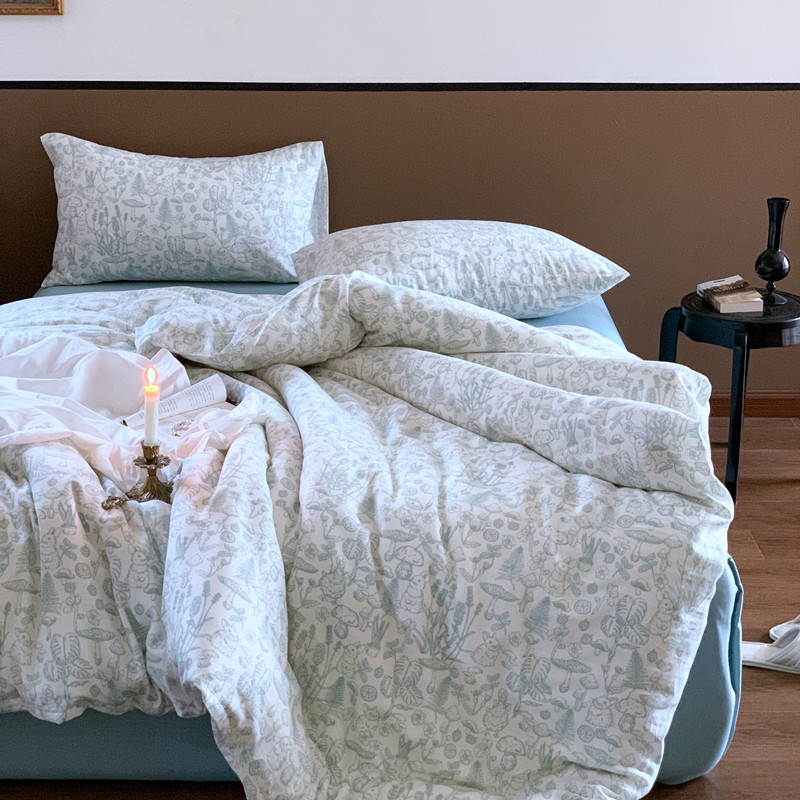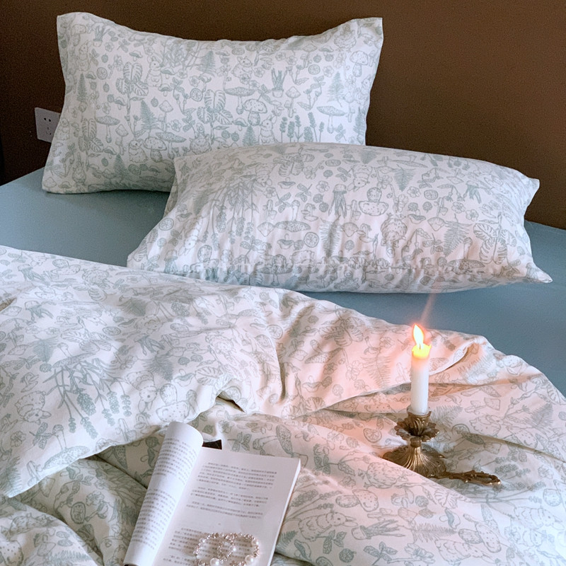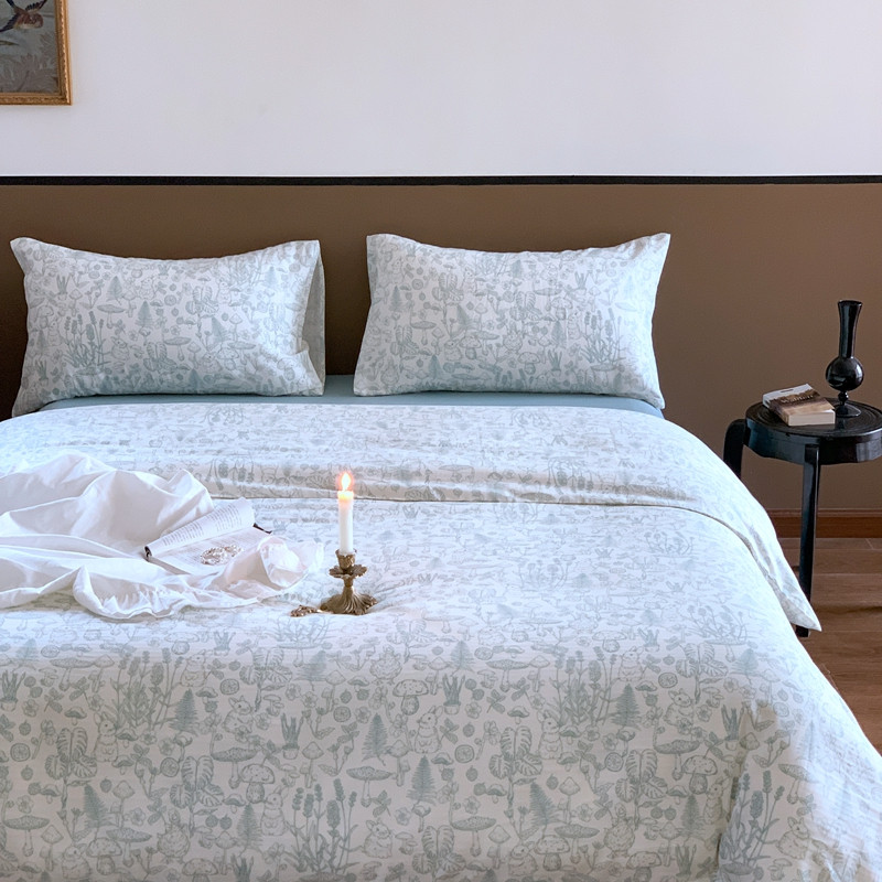源启生活 新原创A类双层纱布全棉印花四件套纯棉三件套 森林物语