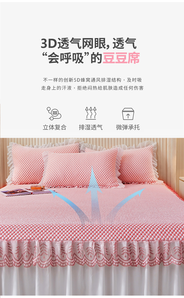 商品名称:卡初 2023新款抗菌豆豆席-蕾丝款 粉色