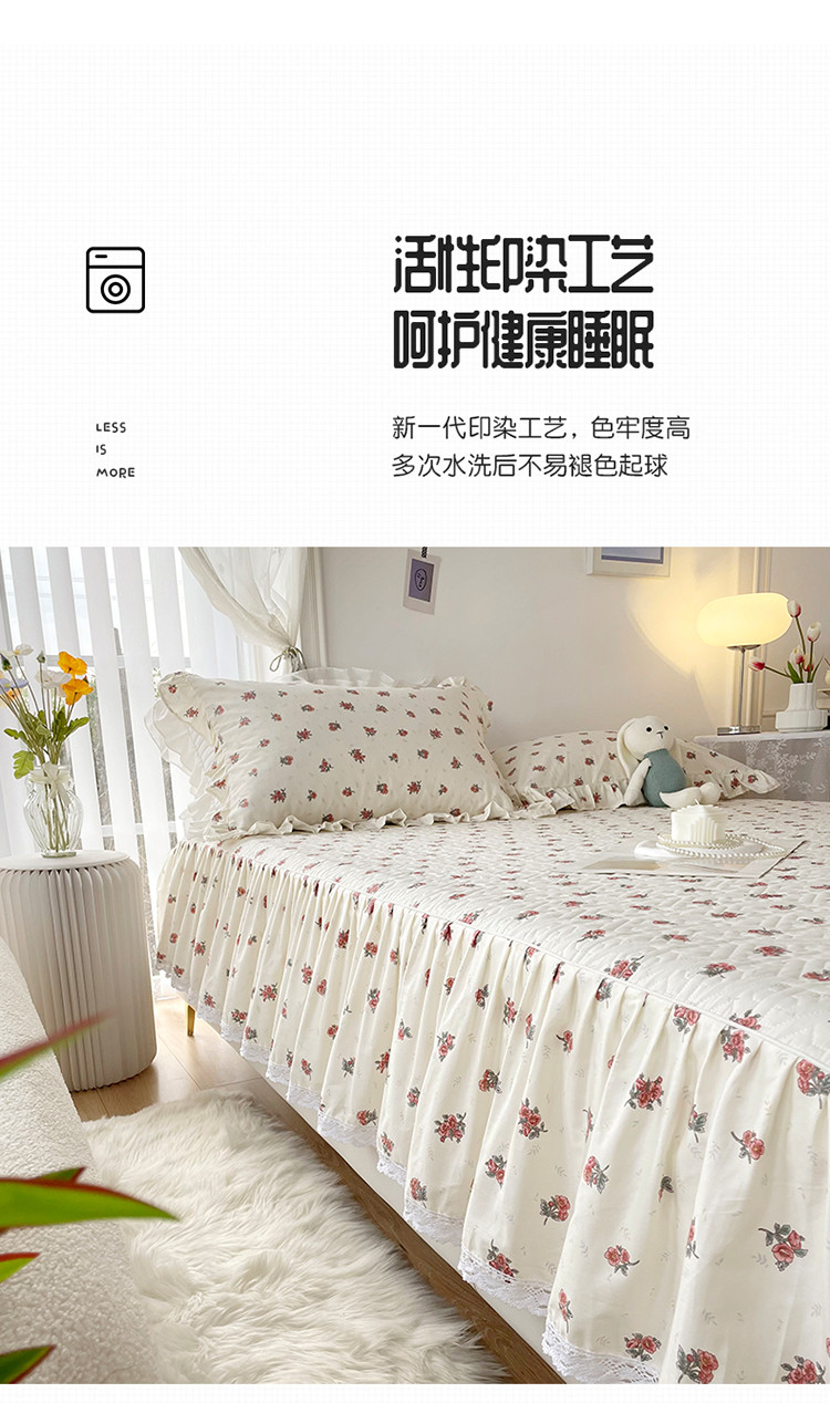 商品名称:忘忧草 2023新款13372全棉夹棉床笠式床裙纯棉 如愿