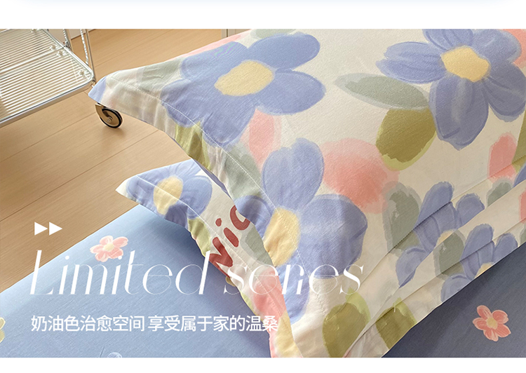 帛织澜家纺 2025新款12868全棉喷气印花枕套 蓝海晨光