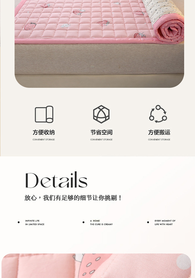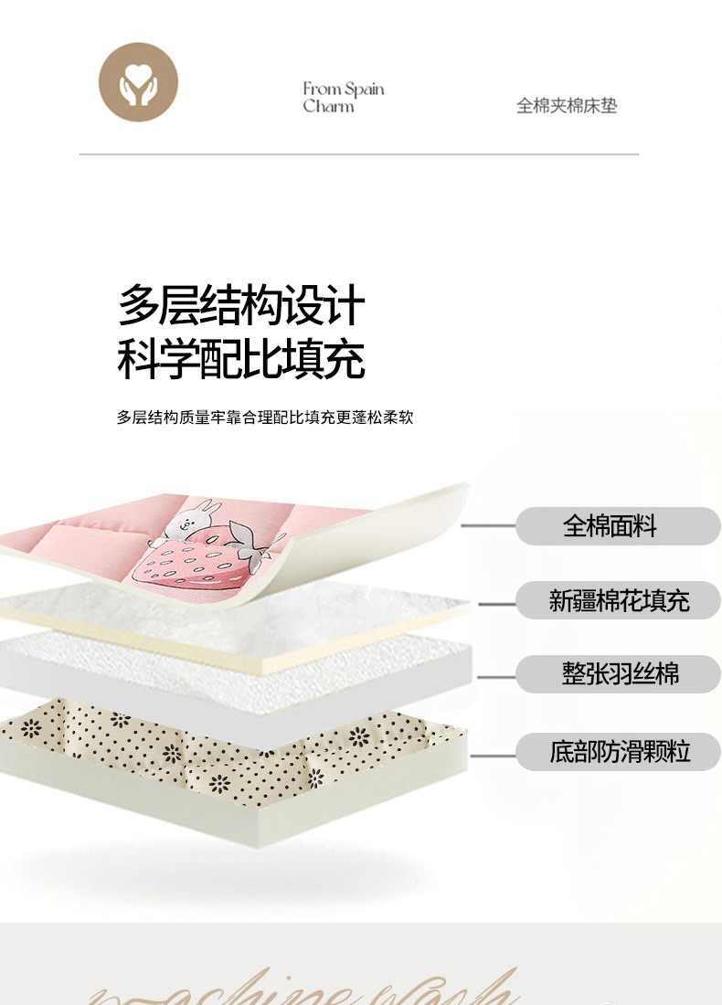 商品名称:东宇床垫 2023新款全棉印花棉花床垫 草莓兔