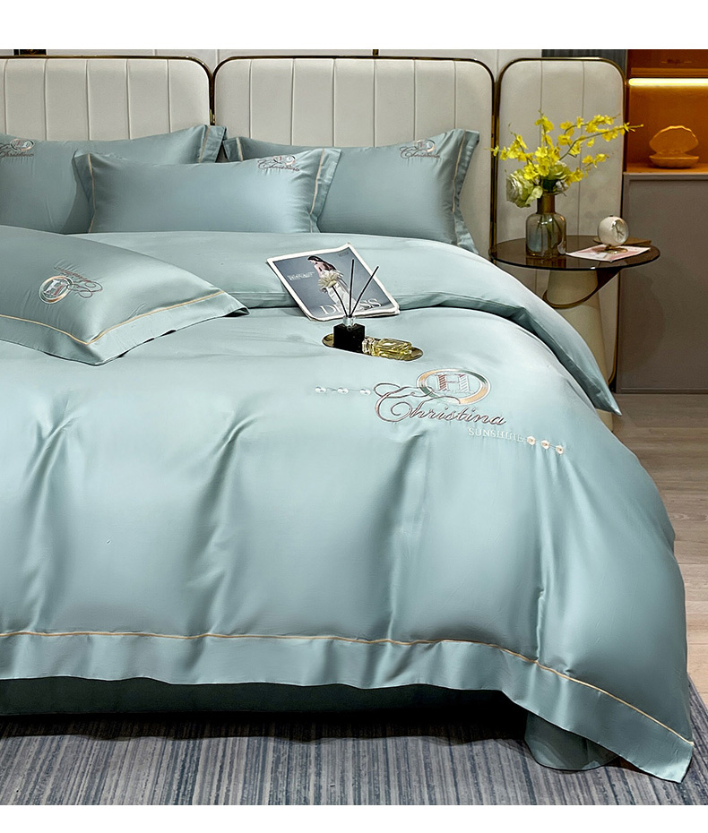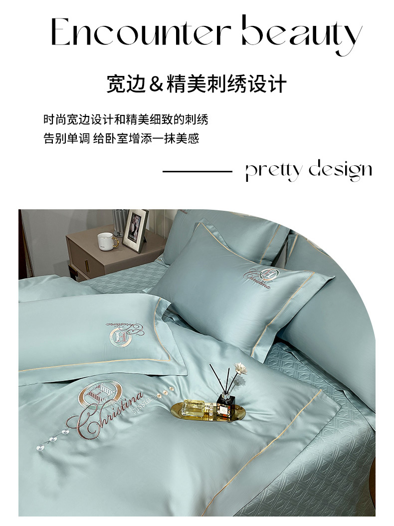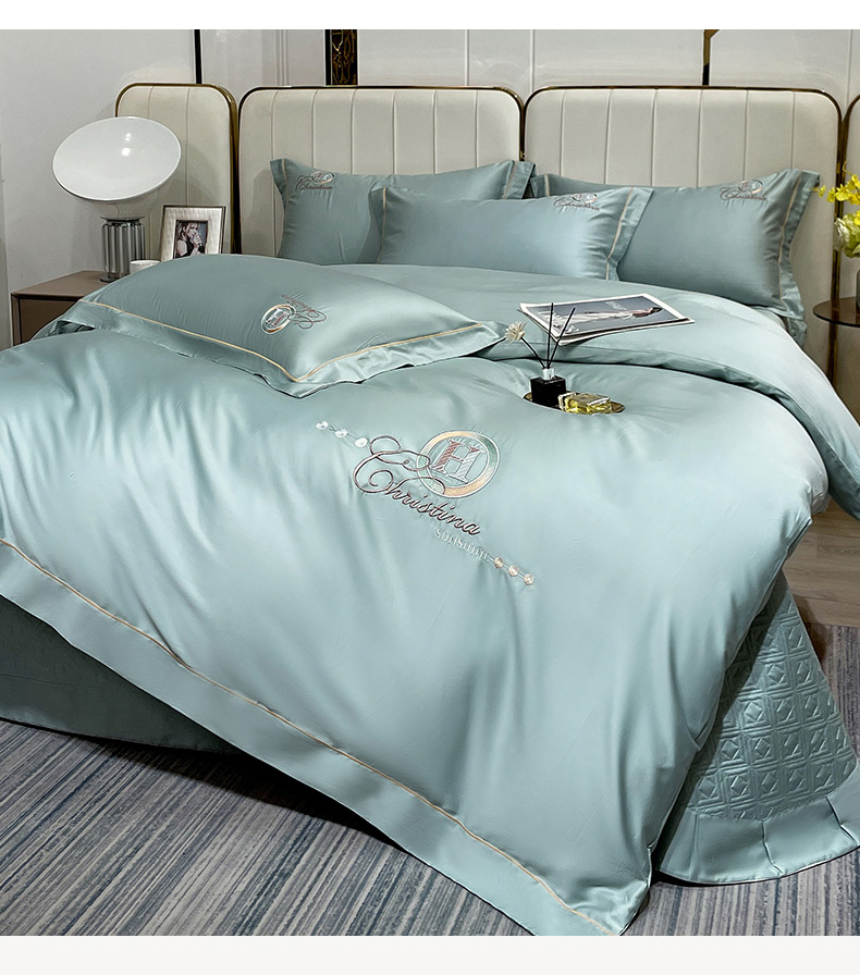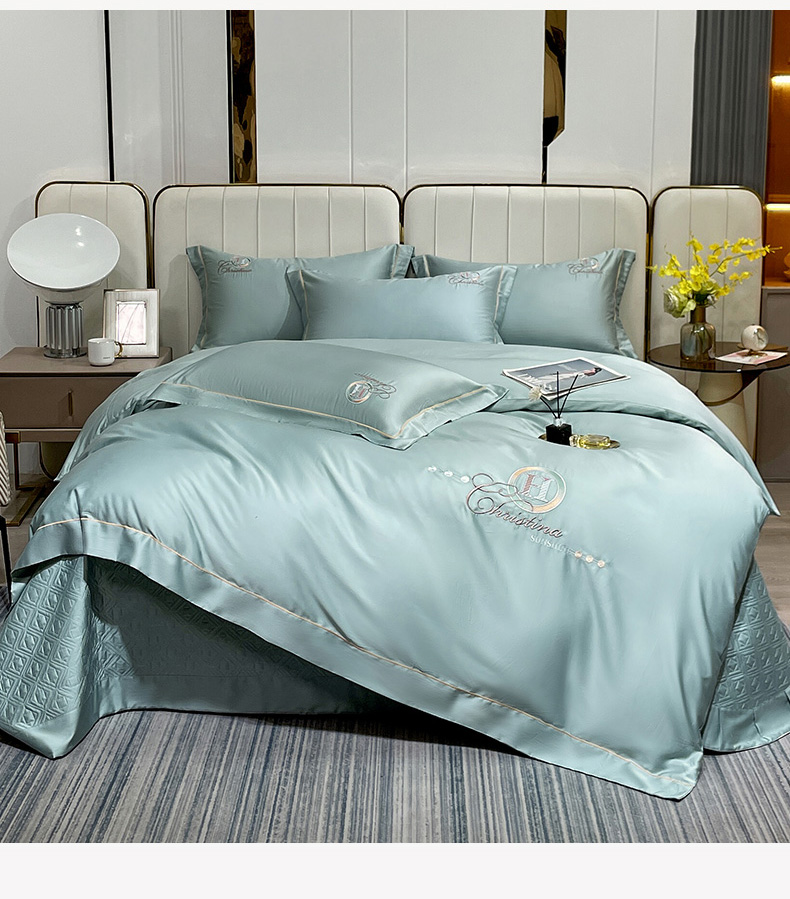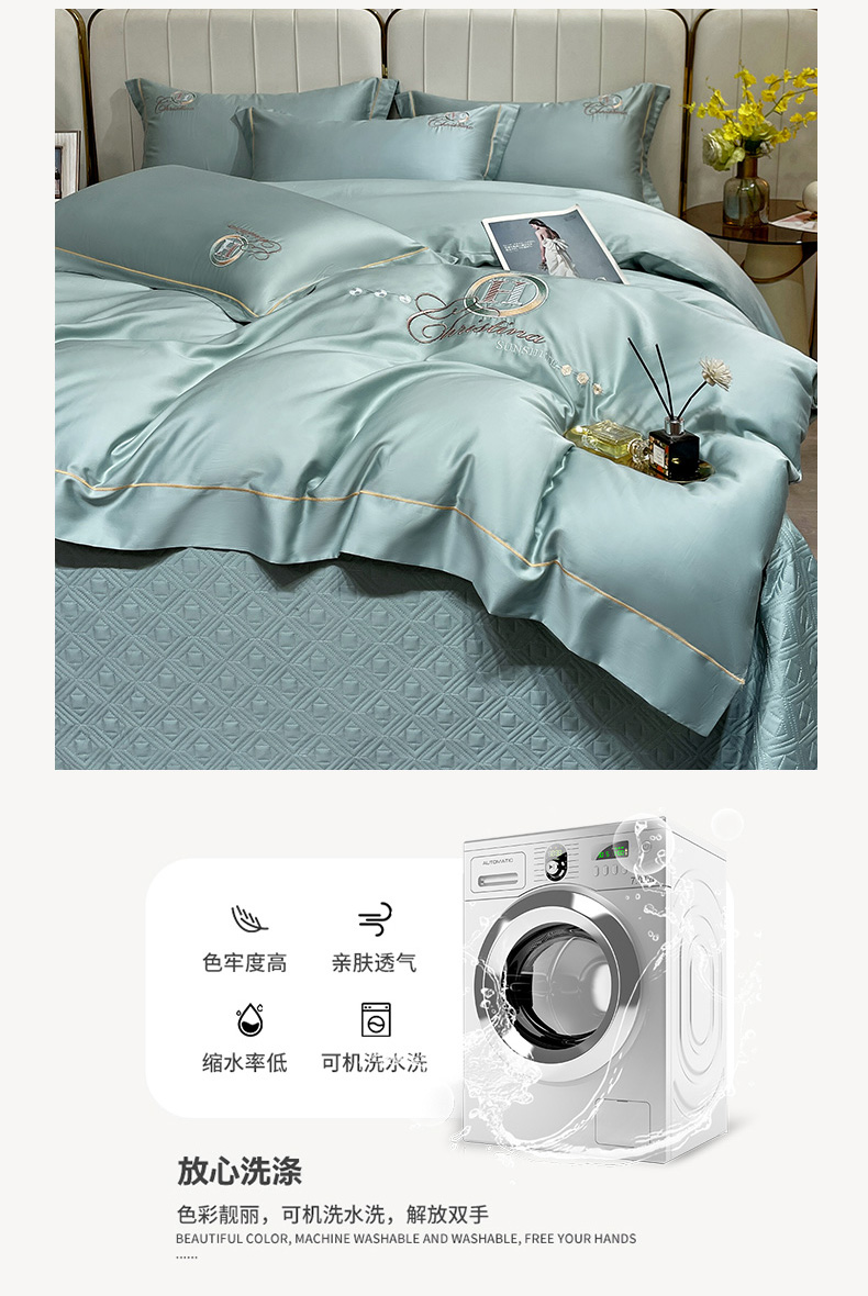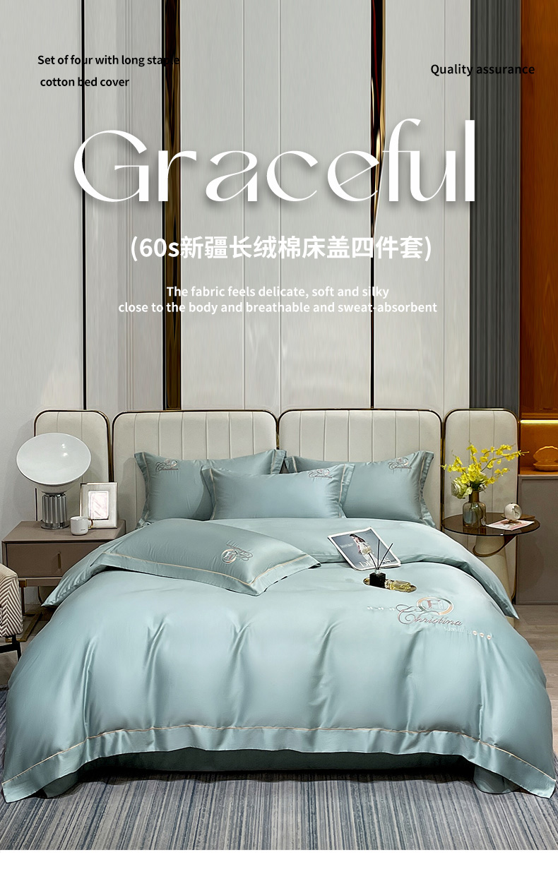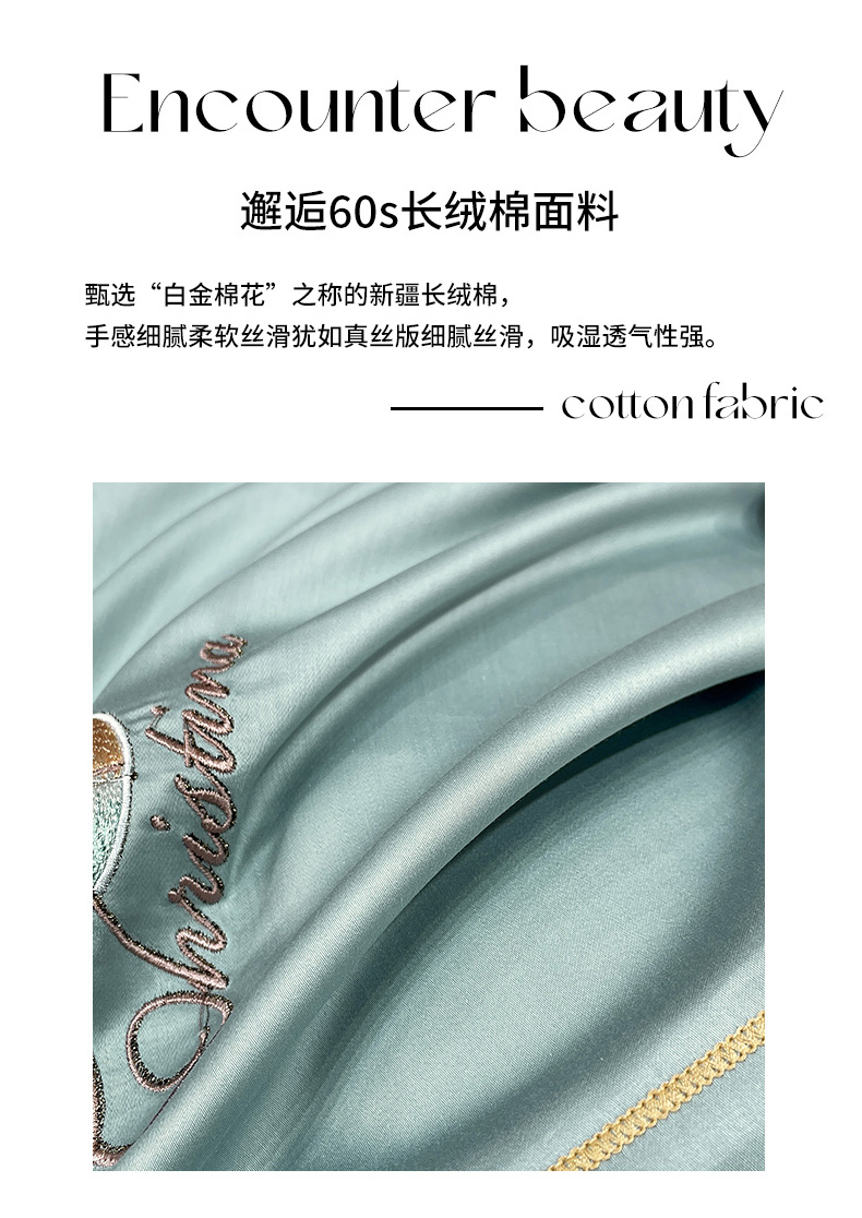 当前位置: 91家纺网 > 商品网购 > 床品套件 > 四件套 > 长绒棉四件套 > 小时代家纺 2023新款60s新疆长绒棉床盖四件套 蓝岛印记-浅水绿