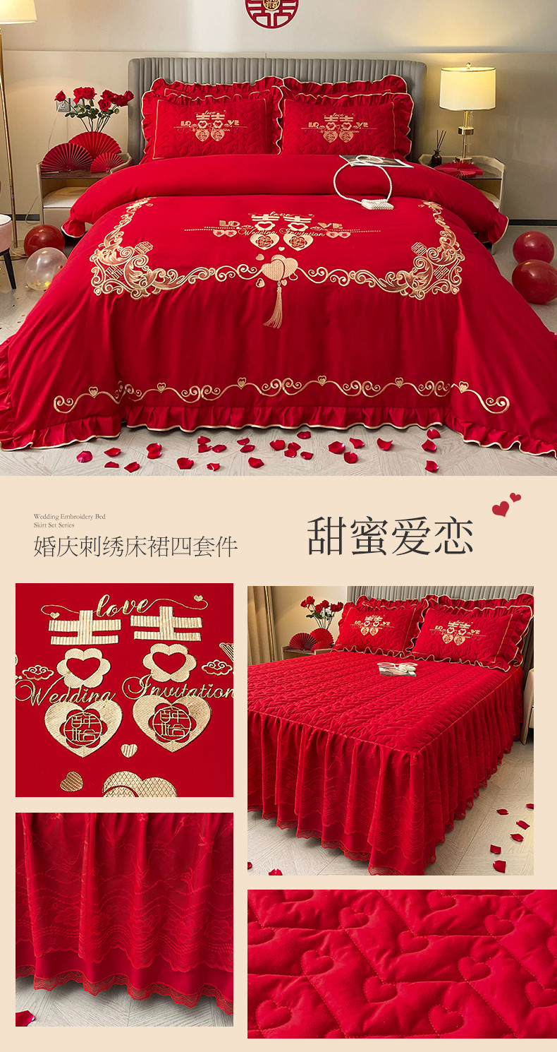 当前位置: 91家纺网 > 商品网购 > 床品套件 > 四件套 > 普通磨毛四件套 > 宜凡家纺 2023新款亲肤磨毛婚庆夹棉床裙四件套 甜蜜爱恋