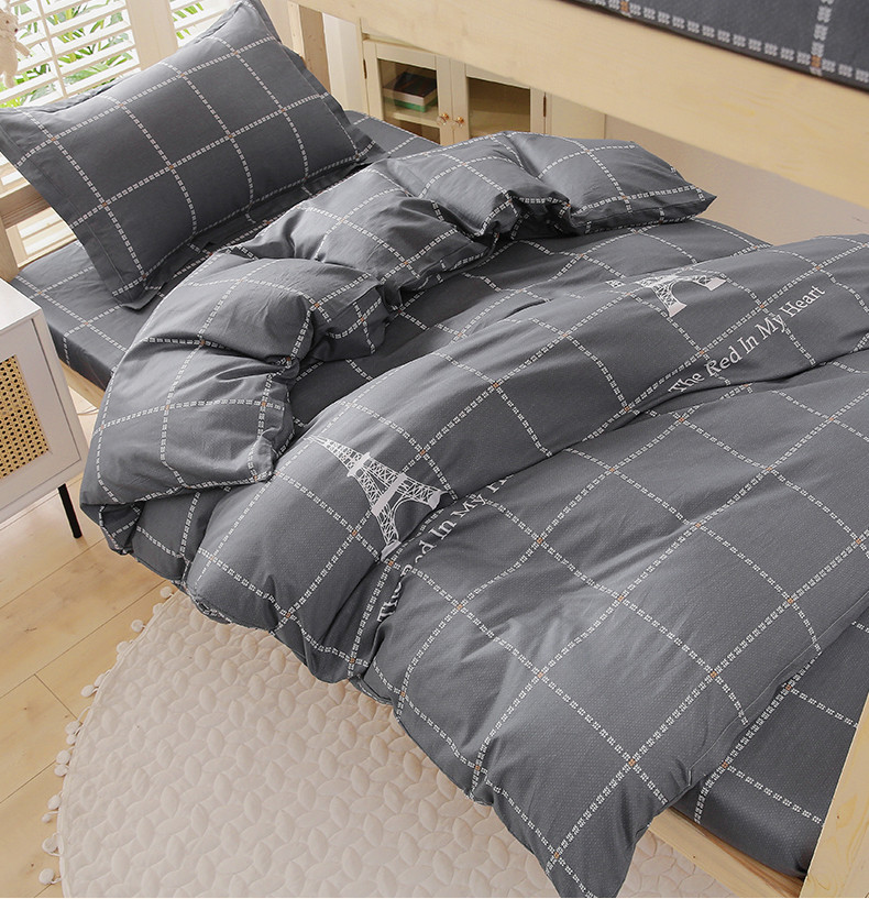 名优40支13070全棉斜纹小清新印花床垫套床笠床单三件套 埃菲尔