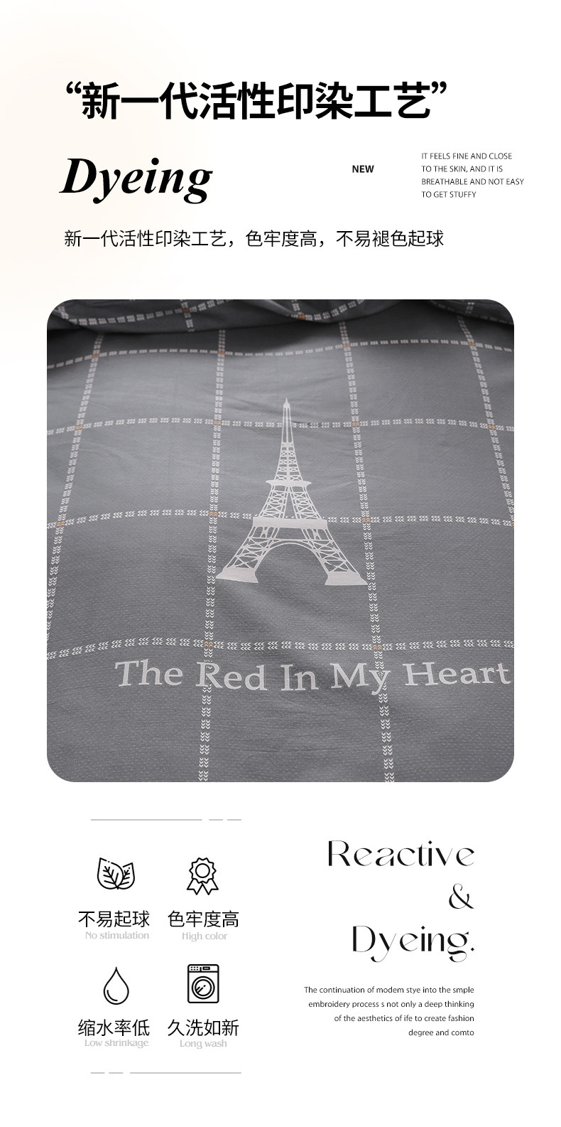 商品名称:名优40支13070全棉斜纹小清新印花床垫套床笠床单三件套 埃菲尔