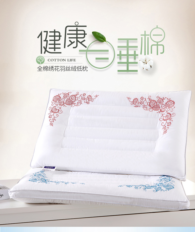 (总)拾光 2023新款立体全棉绣花羽丝酒店成人低枕