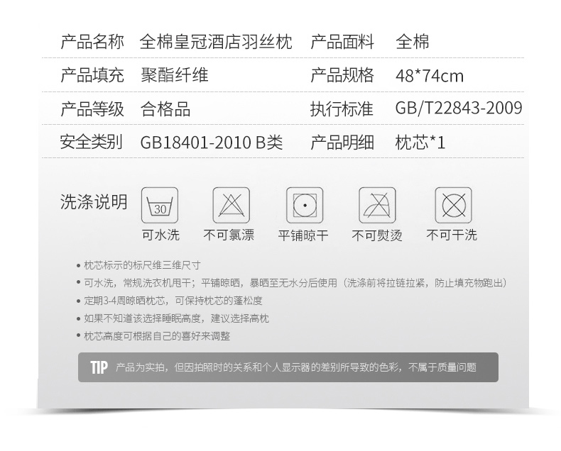 商品名称:(总)拾光 2023新款立体全棉绣花羽丝酒店成人低枕