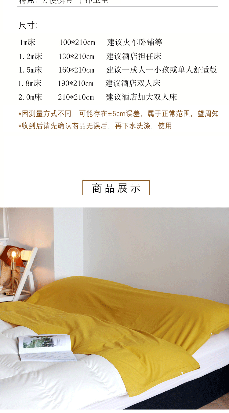 商品名称:Mr.pig猪先生水洗棉 2023新款纯色隔脏睡袋 睡袋-琥珀
