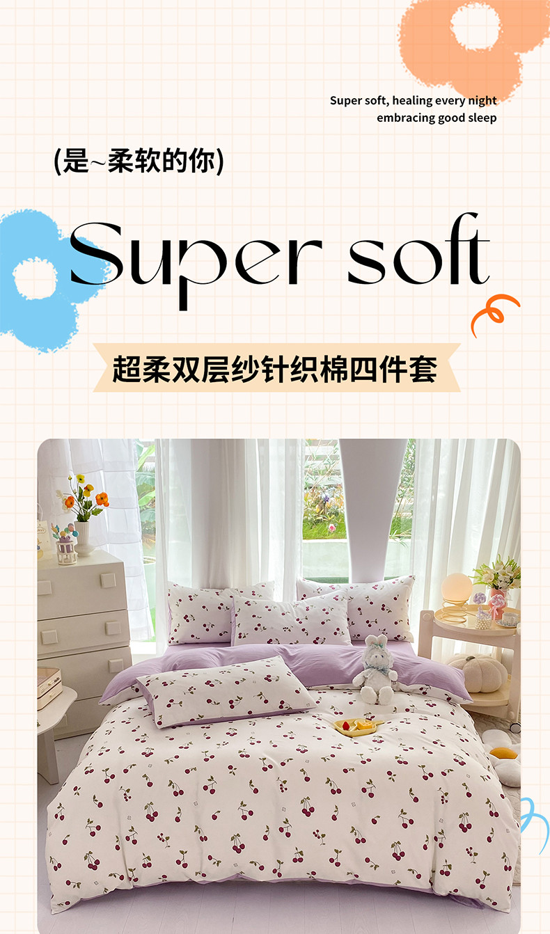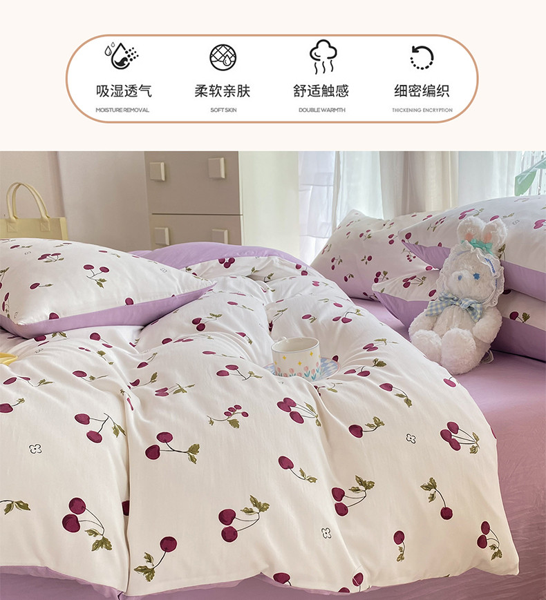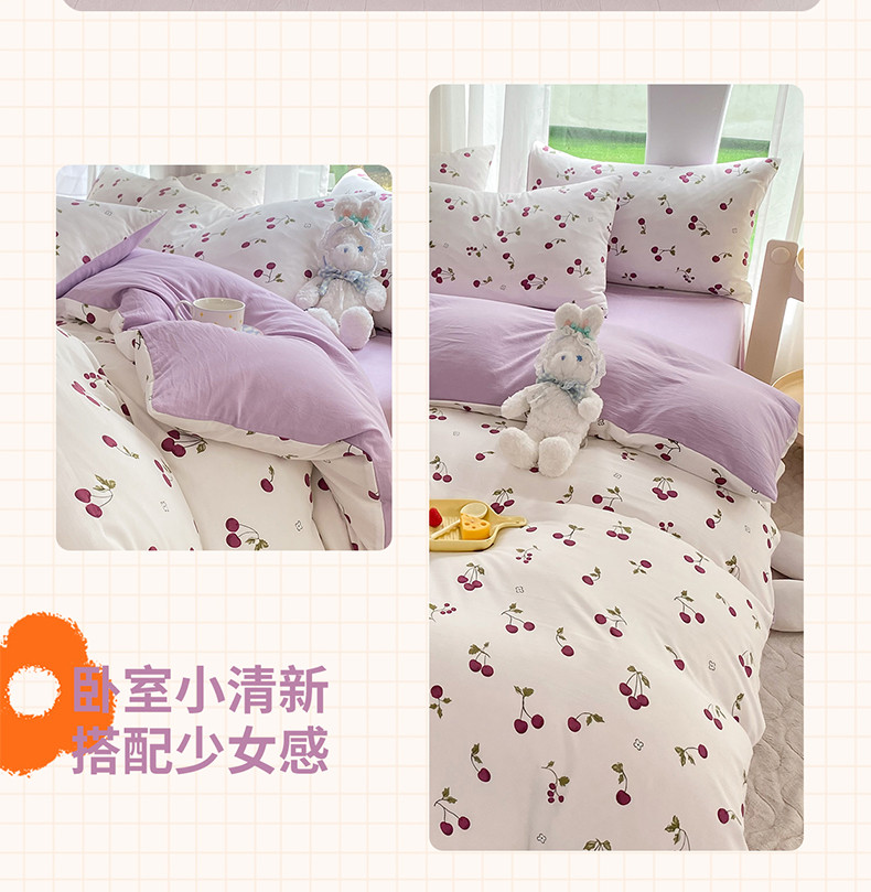 当前位置: 91家纺网 > 商品网购 > 床品套件 > 四件套 > 水洗棉四件套 > 慕尚家纺 2025新款A类超柔双层水洗四件套 夏日樱桃