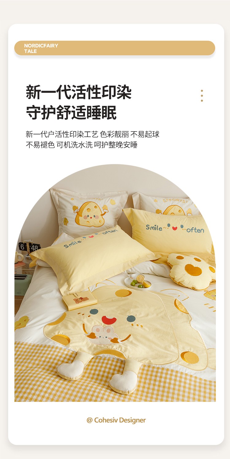 (总)新款ins风全棉A类水洗棉贴布绣花四件套儿童三件套上下铺床套件,彩虹鸭,开心芝士,小鳄莱莱,长耳兔,宇航梦