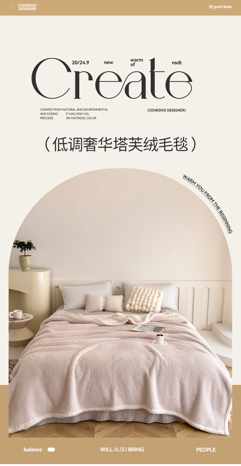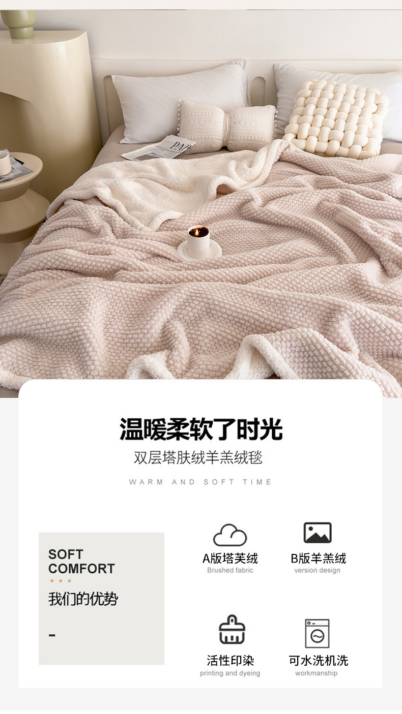 佰亿莱 2024新款塔芙绒羊羔绒多功能毯 象牙白