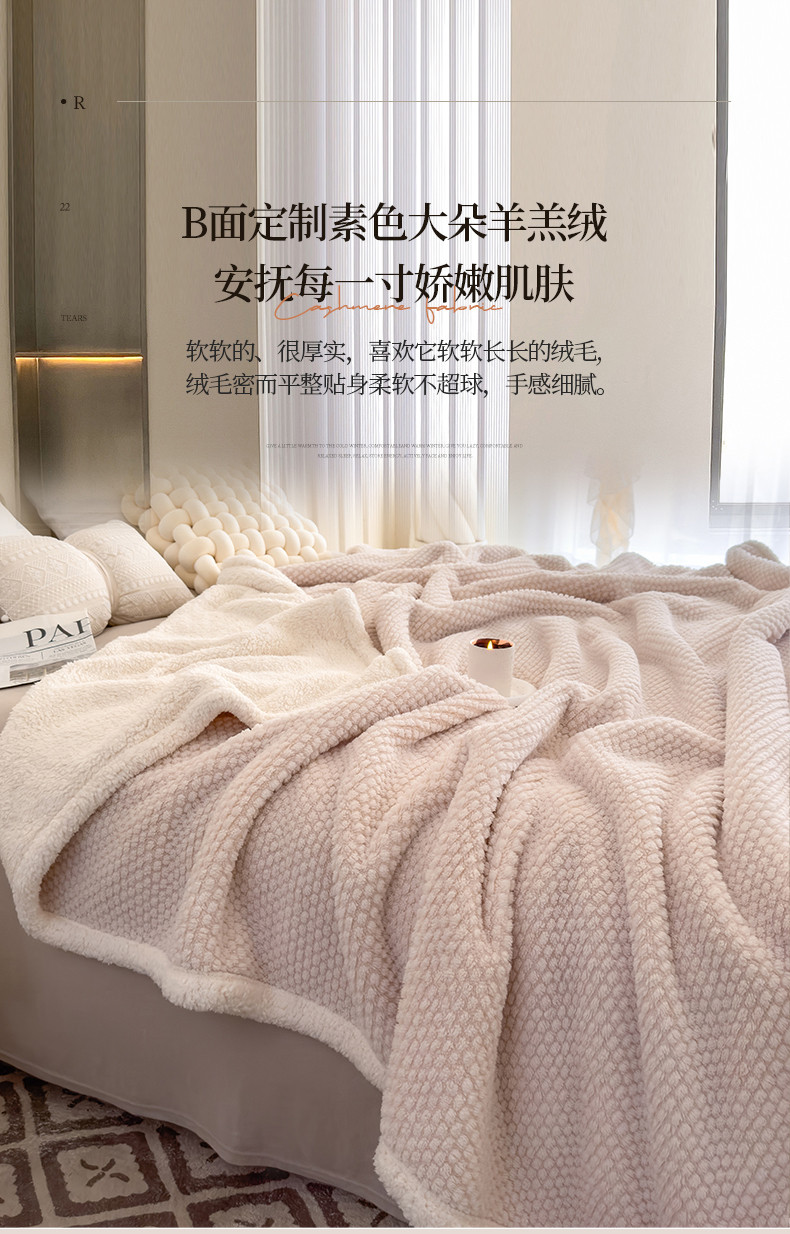 商品名称:佰亿莱 2024新款塔芙绒羊羔绒多功能毯 象牙白