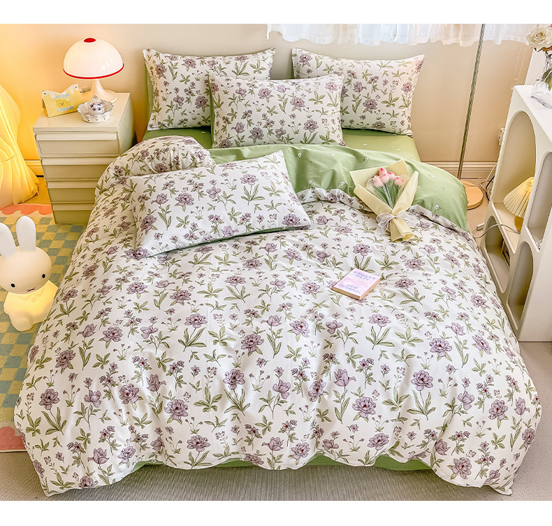 (总)小懒猪 2026春夏新款全棉纯棉花卉款四件套,淡紫花屹,柳色衫林,漫彩花韵,沐风苍兰,青蔓花盏,森屹兔眠,雾蓝花簇,紫粉花漾