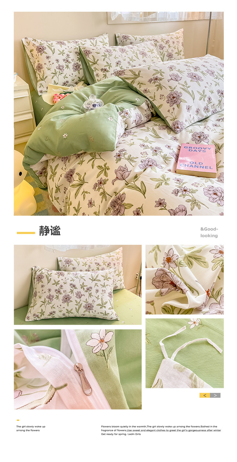 小懒猪 2023新款春夏全棉小清新系列四件套 静谧