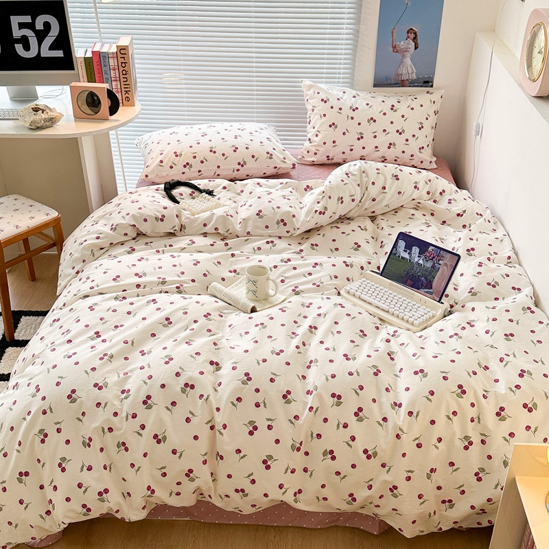 昔可 2023新款学生季全棉四件套-小花系列 小小的樱桃