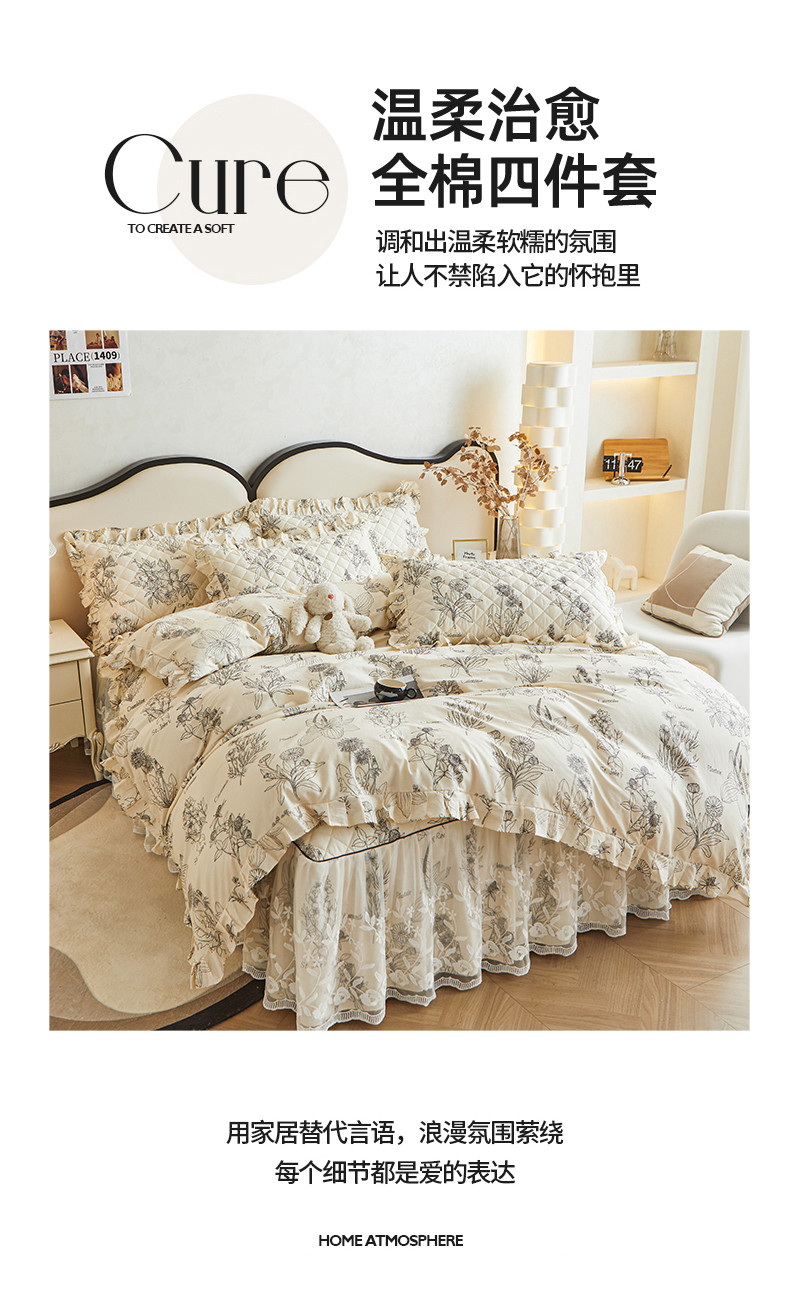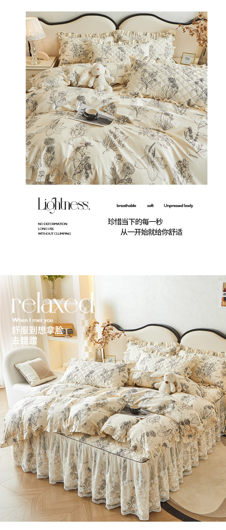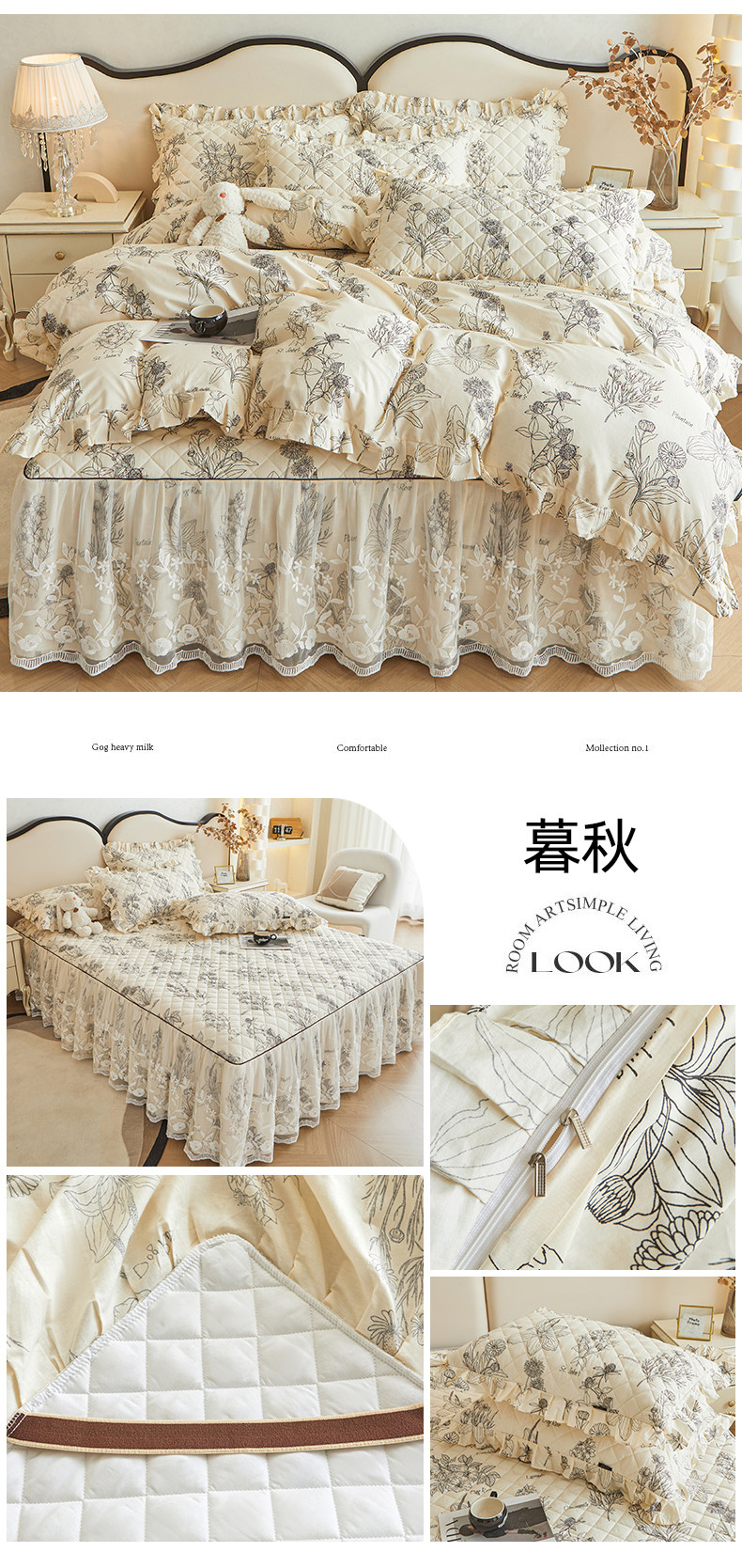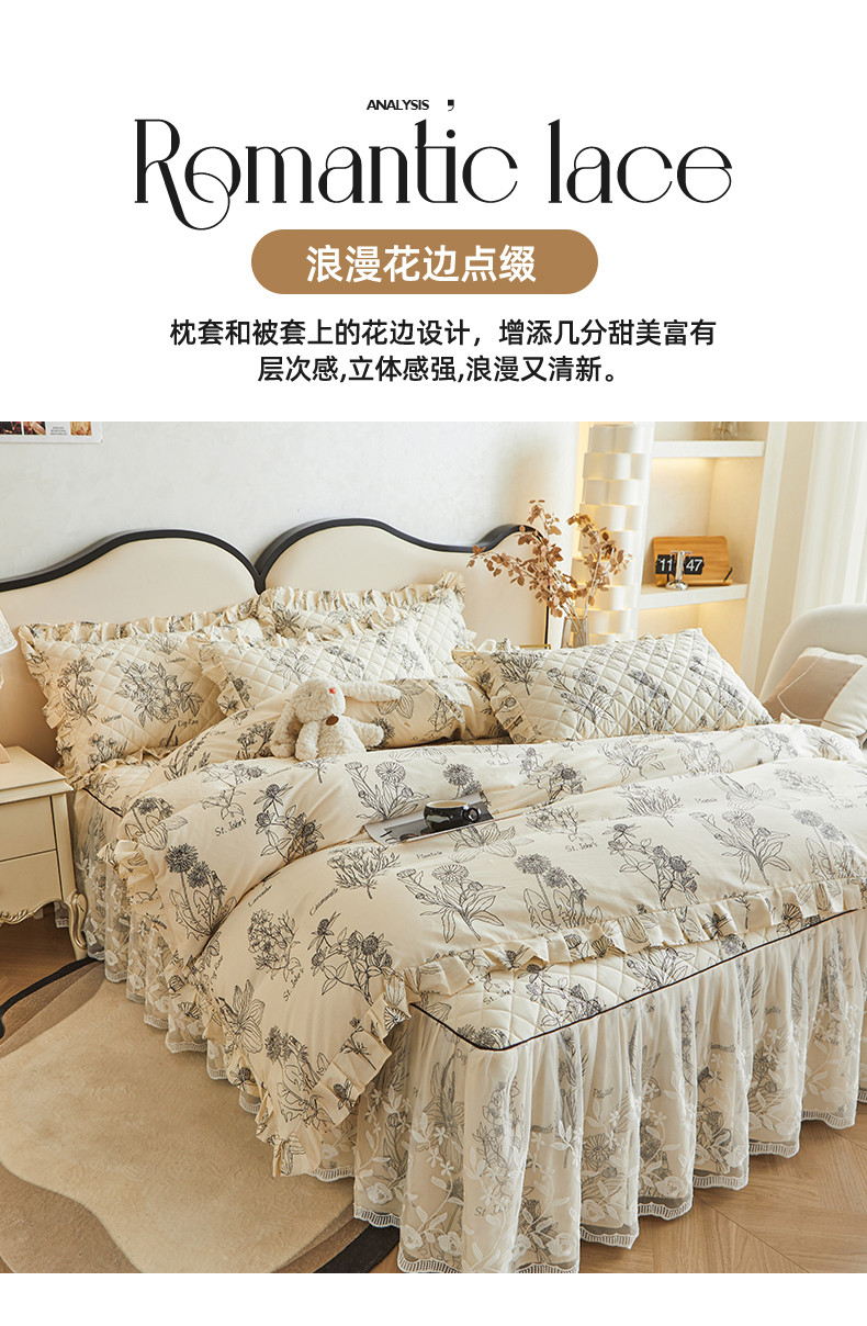 好眠好梦 情人节系列--全棉蕾丝夹棉床裙四件套 暮秋