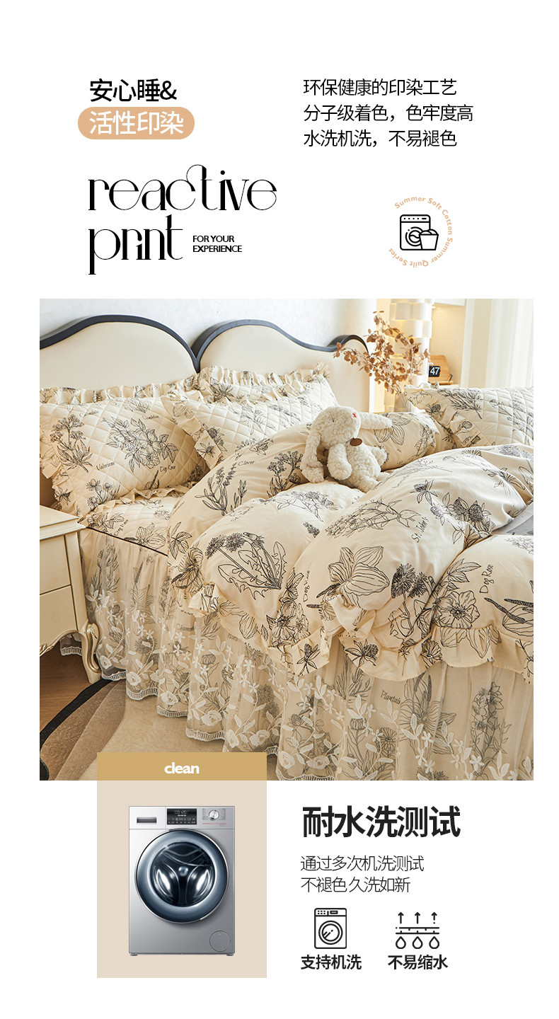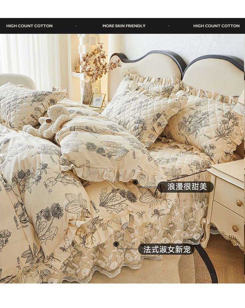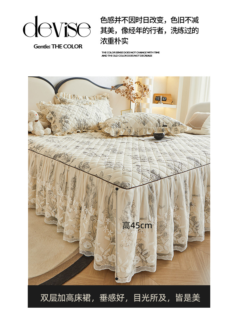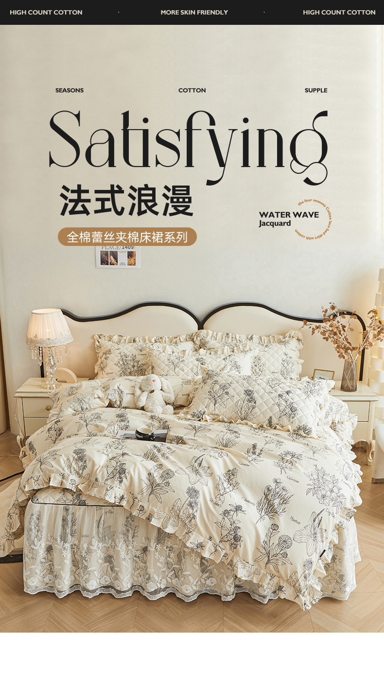好眠好梦 情人节系列--全棉蕾丝夹棉床裙四件套 暮秋