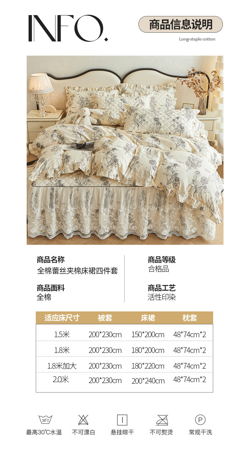 商品名称:好眠好梦 情人节系列--全棉蕾丝夹棉床裙四件套 暮秋