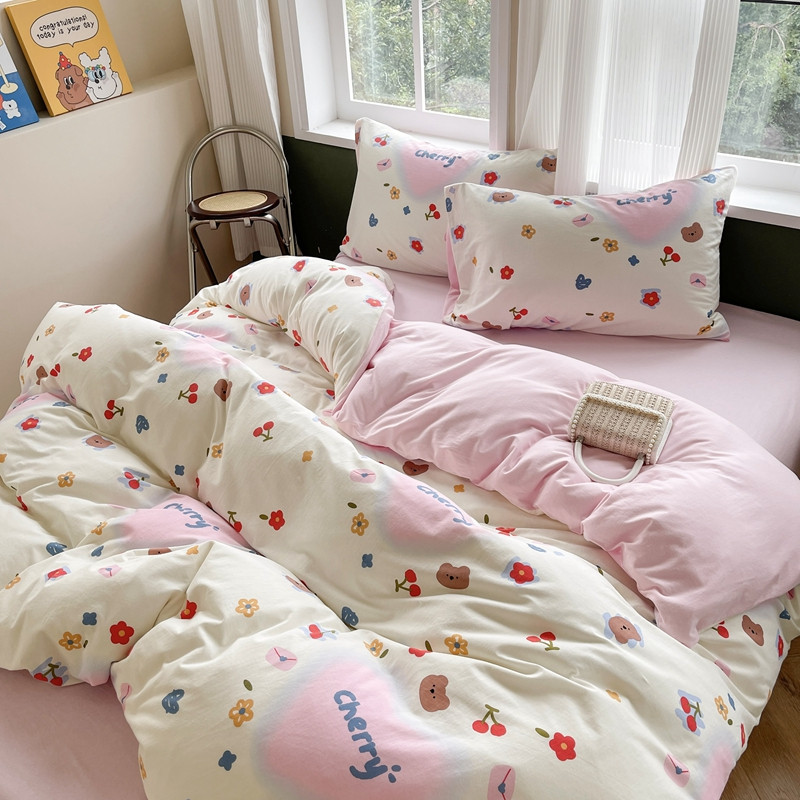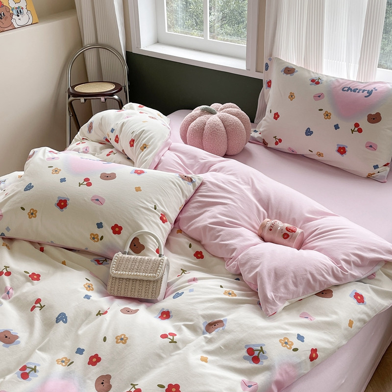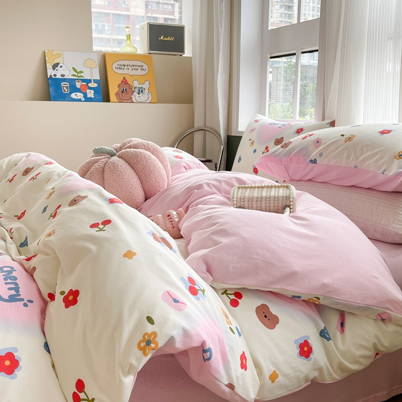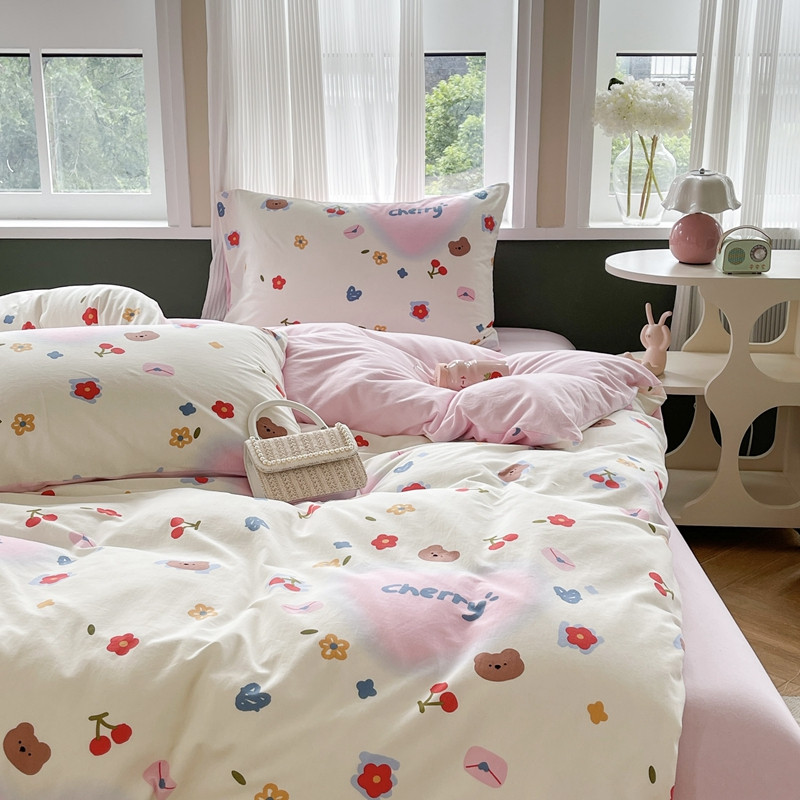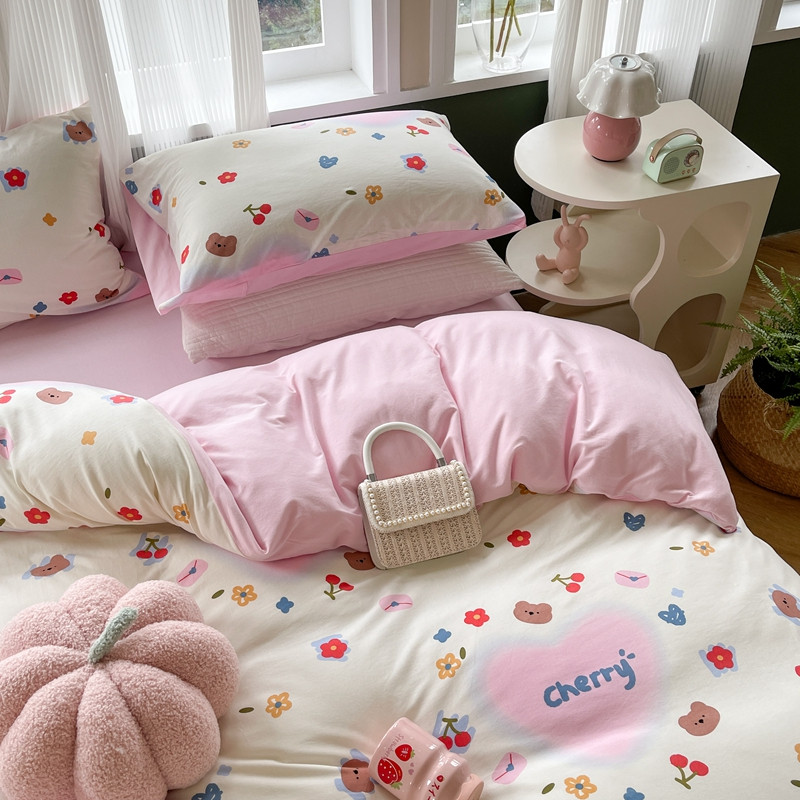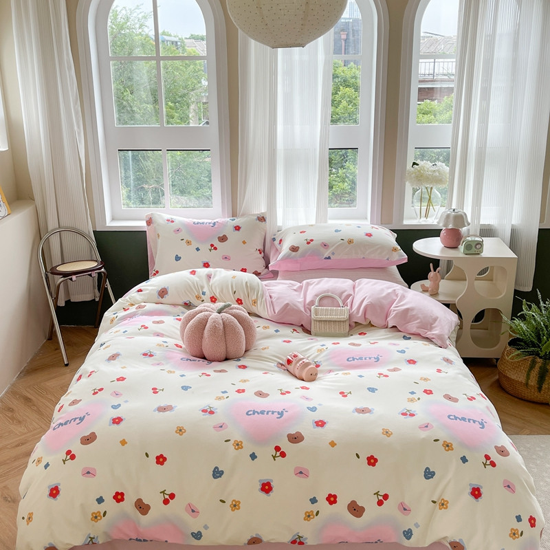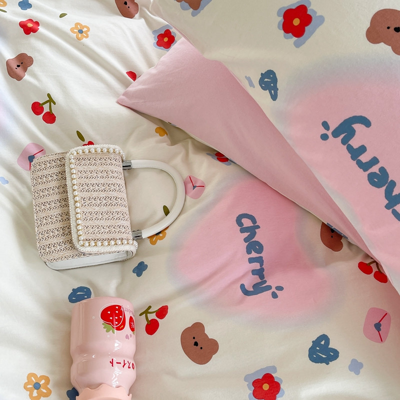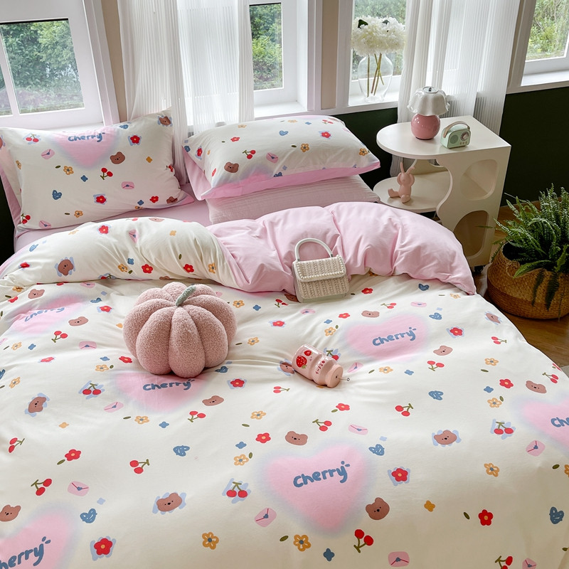 商品名称:柚子 2023新款全棉针织印花四件套 樱桃爱心