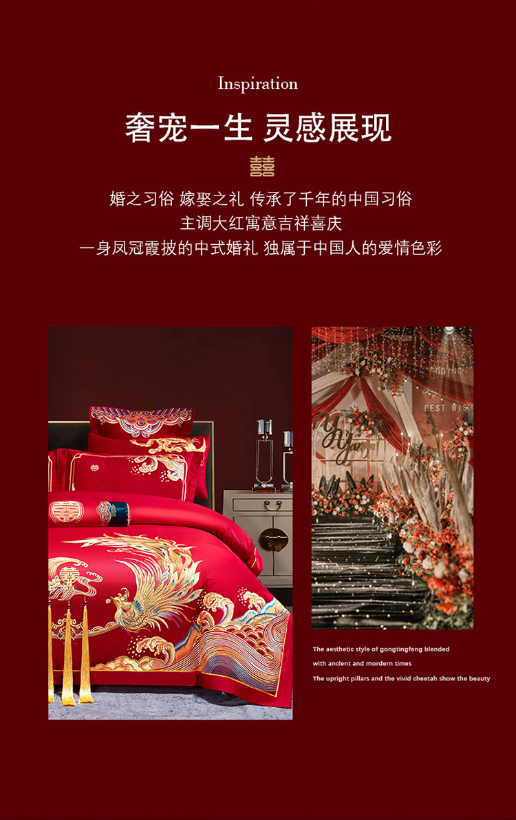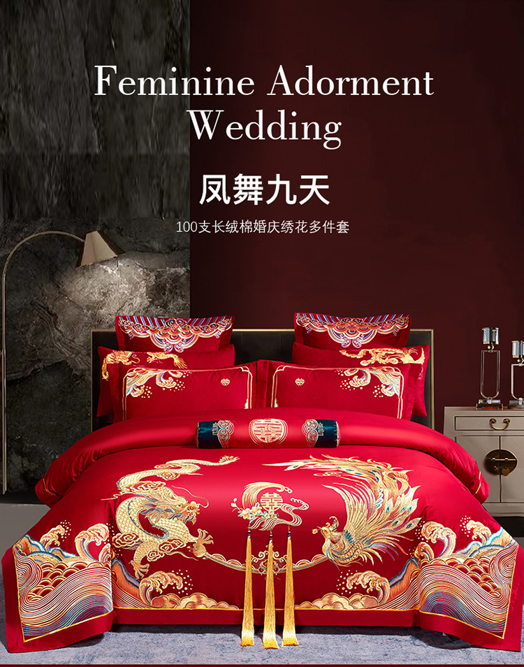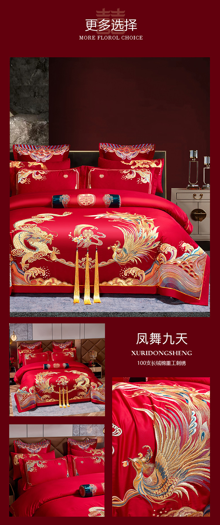 商品名称:甜咪咪 2023秋冬新品婚庆全棉长绒棉100支四件套多件套 凤舞九天