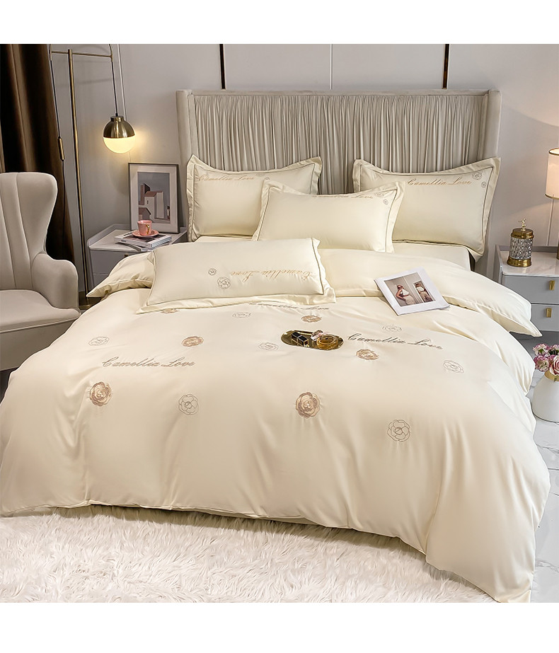 涵宸家纺 2023新款水洗氧棉-山茶花系列四件套 山茶花-米黄