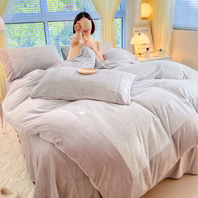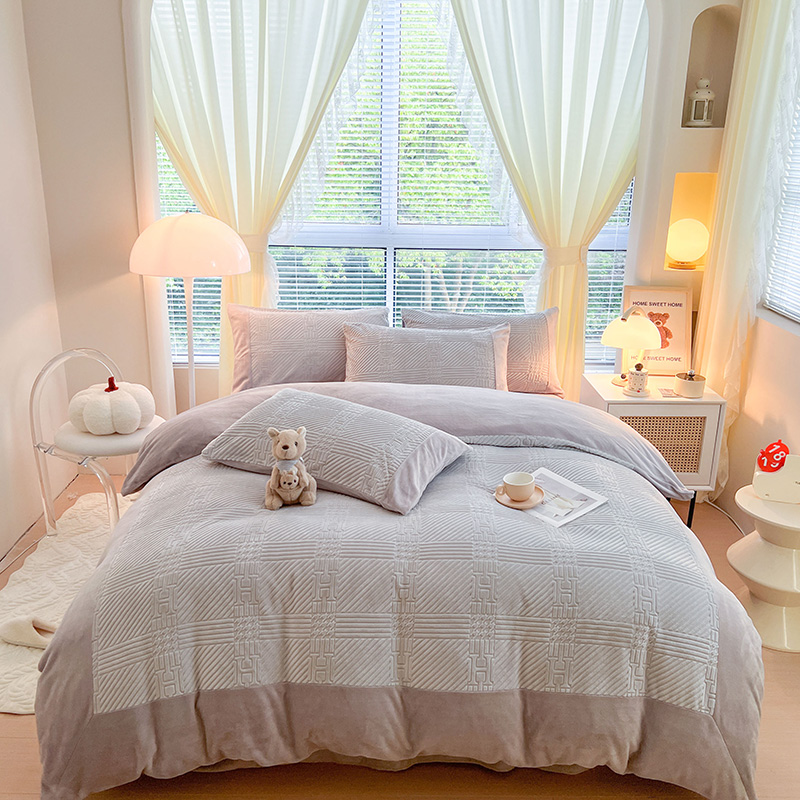 新月家纺(锦威郎) 2024新款秋冬230克海貂绒牛奶绒四件套-艾梵希 艾梵希- 灰