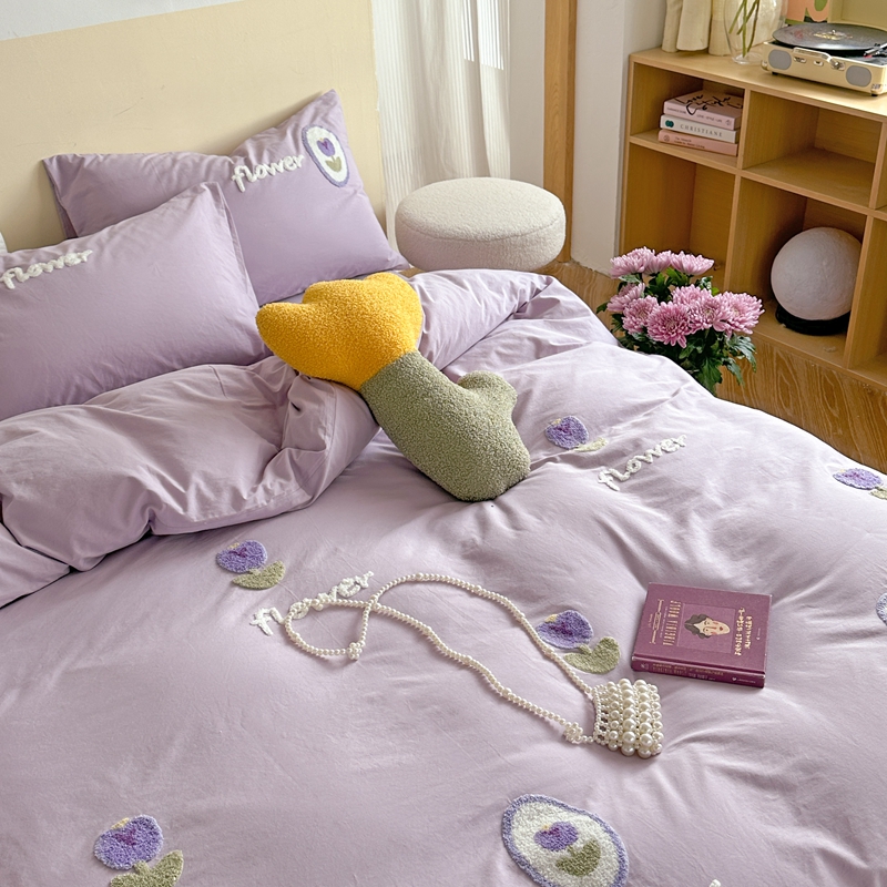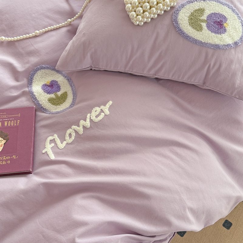 柚子YOUTH 2023新款40支水洗棉毛巾绣四件套 花季
