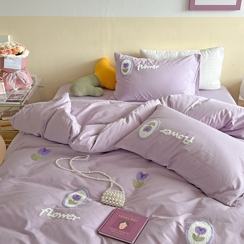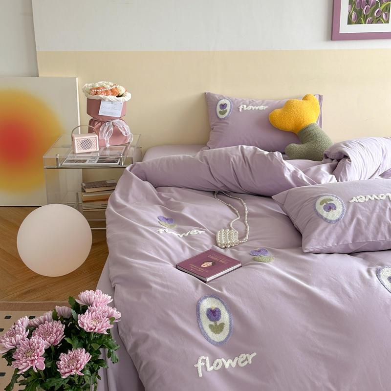 商品名称:柚子YOUTH 2023新款40支水洗棉毛巾绣四件套 花季