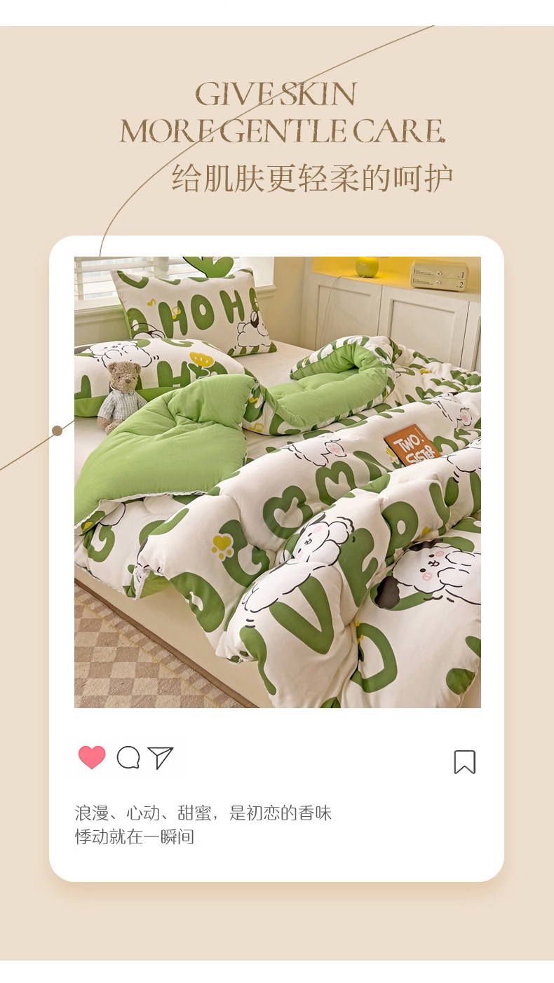 • 91家纺网 家纺一手货源 找家纺 (总)寐居家纺 2025新款贴布绣高克重牛奶绒四件套,安吉拉喵,查理狗,粉糯kitty,皮皮布布