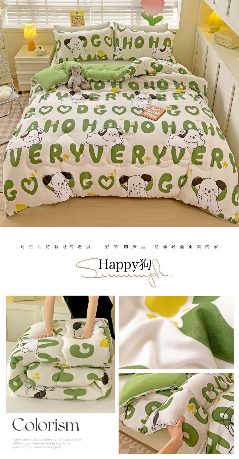 • 91家纺网 家纺一手货源 找家纺 寐居 2023新款A类水洗棉印花冬被 Happy狗