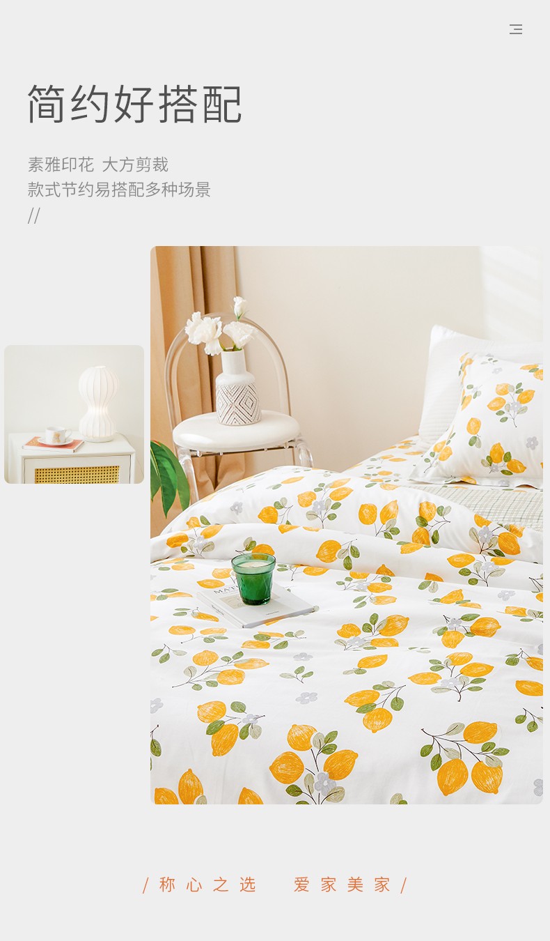 当前位置: 91家纺网 > 商品网购 > 床品套件 > 三件套 > 元元-2023新款新增全棉13372三件套(不夹棉) 柠檬