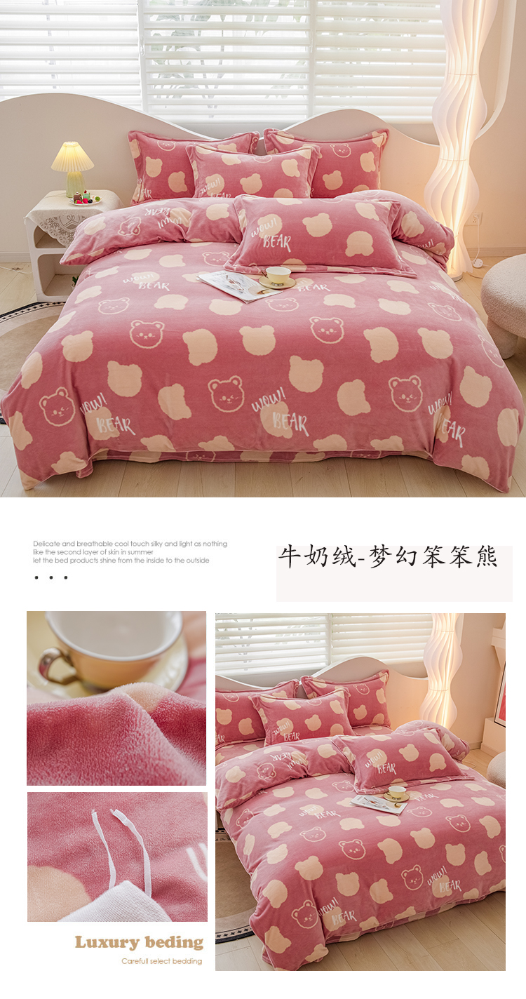 尚品凤凰2025新款高克重印花牛奶绒四件套-工艺款梦幻笨笨熊