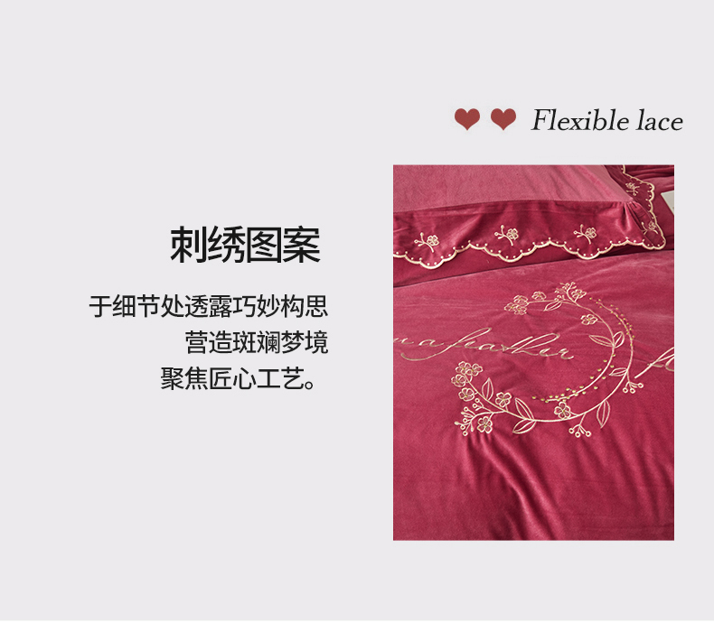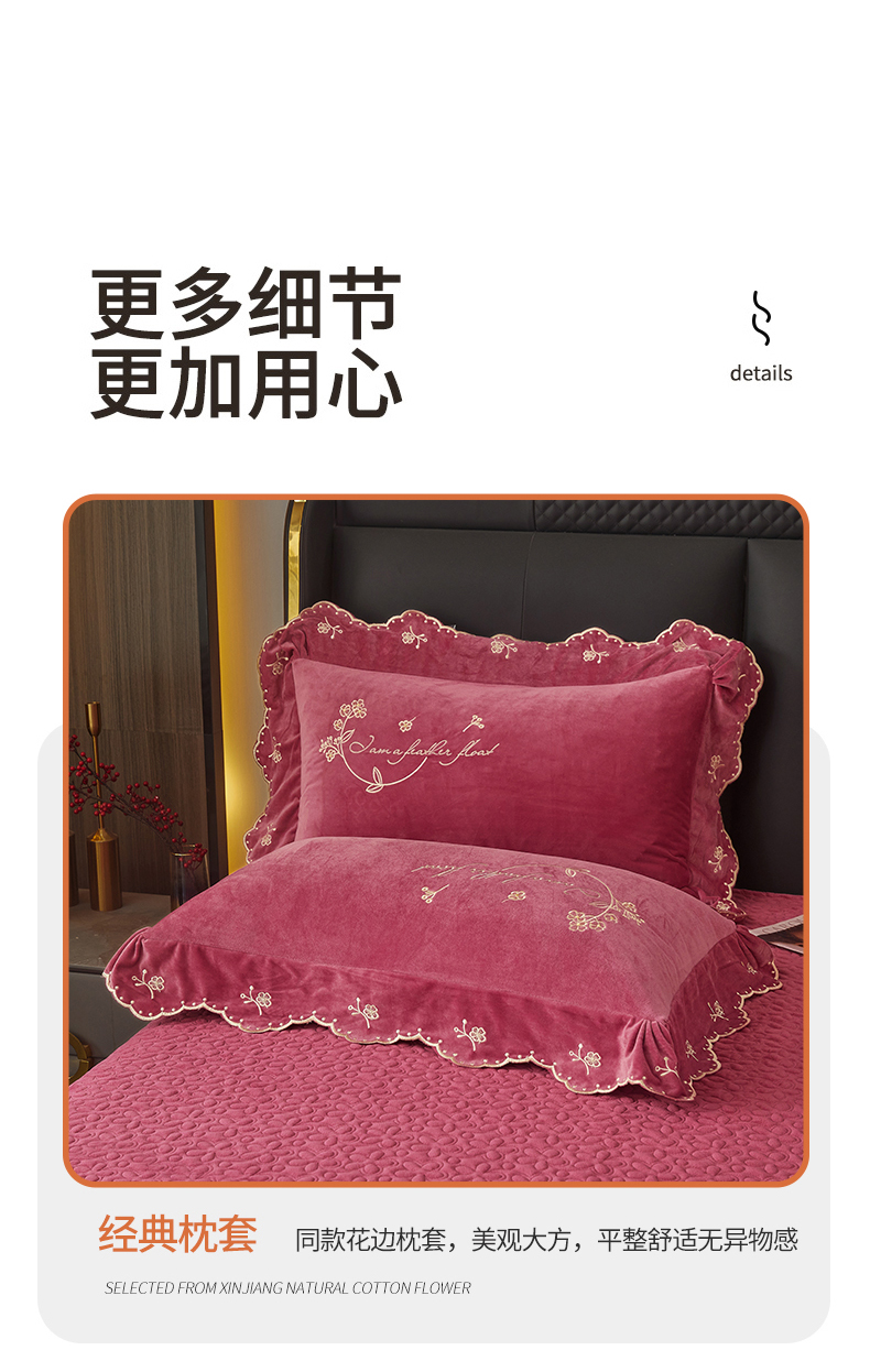 (总)恒爱家纺 2025新款牛奶绒贴布绣夹棉床裙四件套,豆沙红,浪漫紫,天空蓝,温馨粉,象牙白