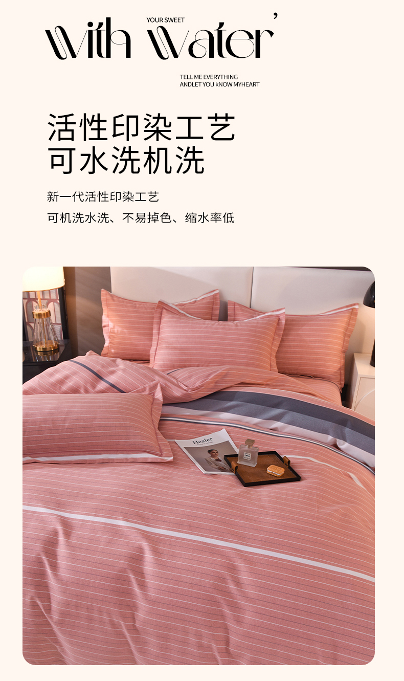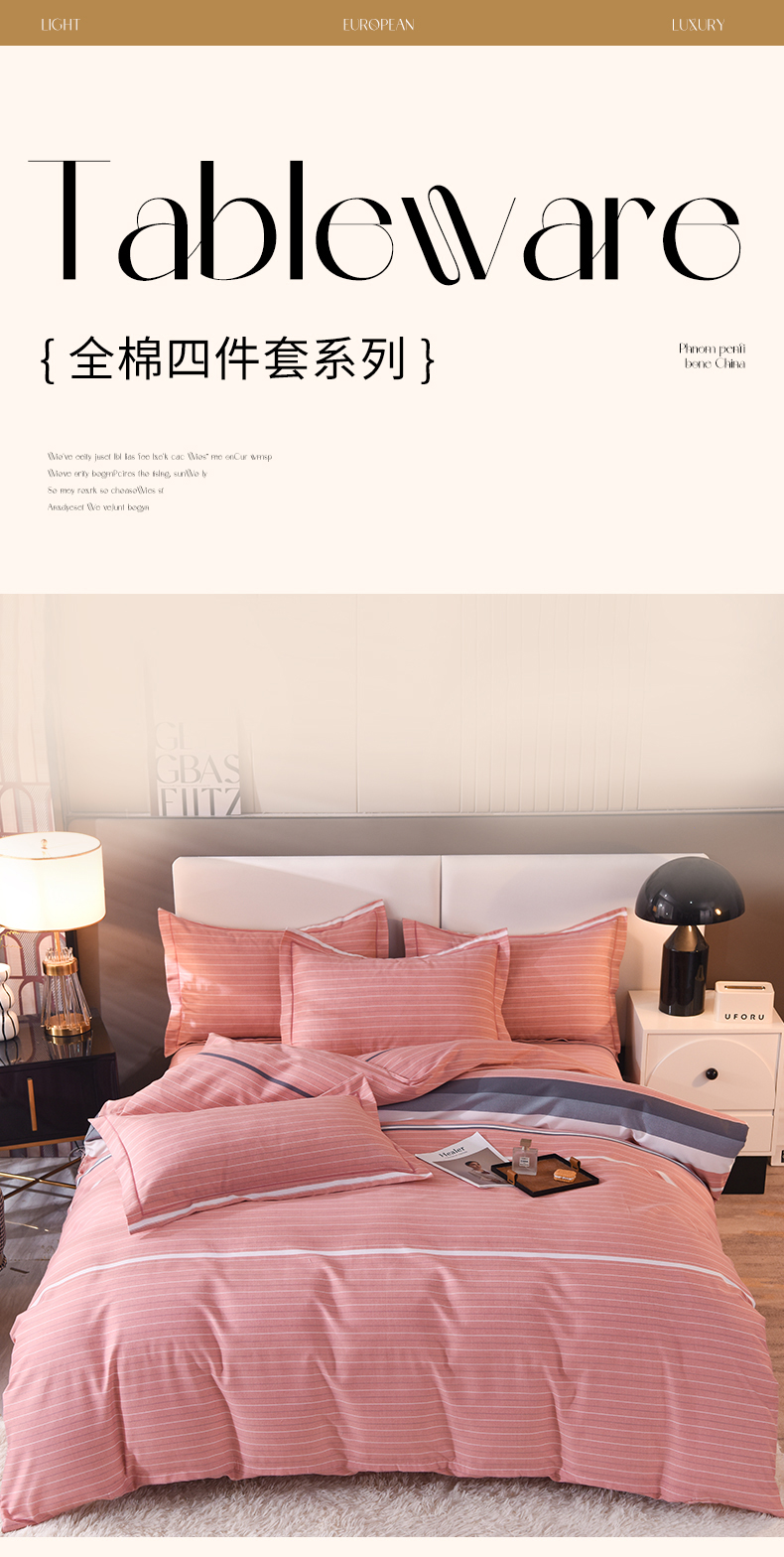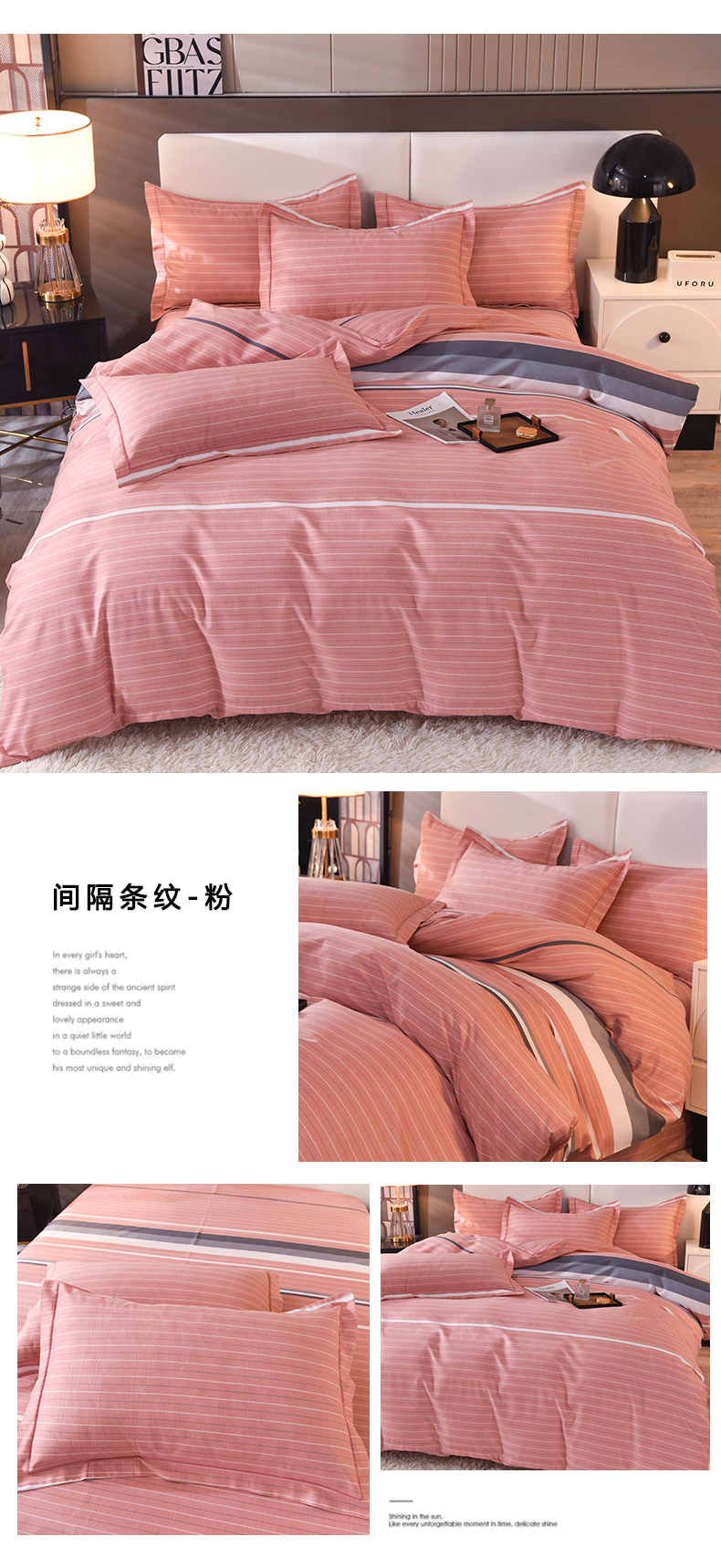 当前位置: 91家纺网 > 商品网购 > 床品套件 > 四件套 > 全棉普通四件套 > 简如 2025新款全棉磨毛印花四件套 间隔条纹-粉