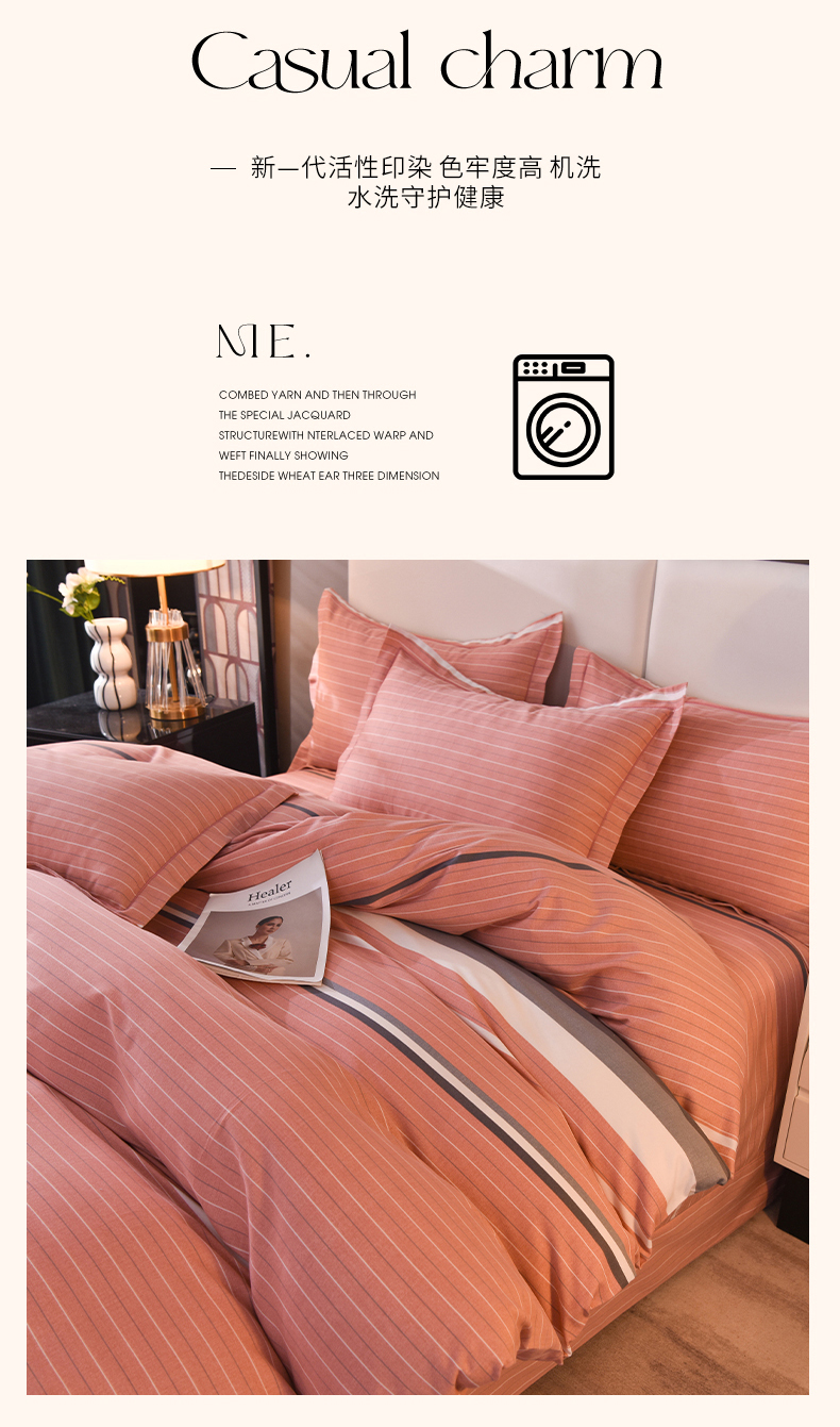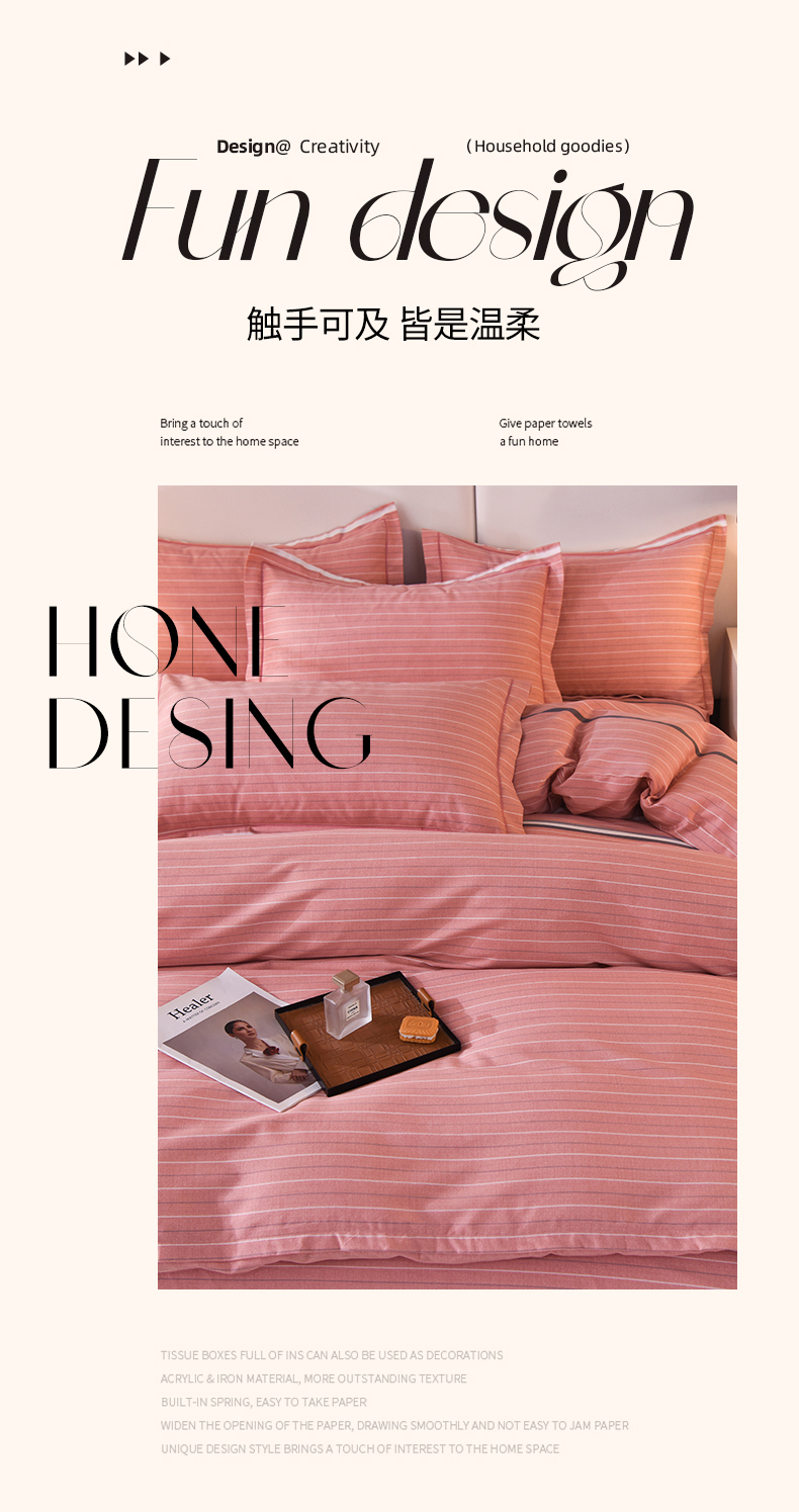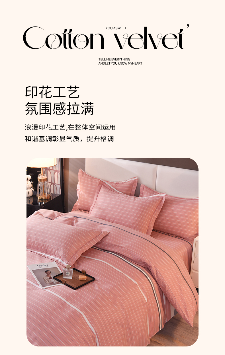 当前位置: 91家纺网 > 商品网购 > 床品套件 > 四件套 > 全棉普通四件套 > 简如 2025新款全棉磨毛印花四件套 间隔条纹-粉