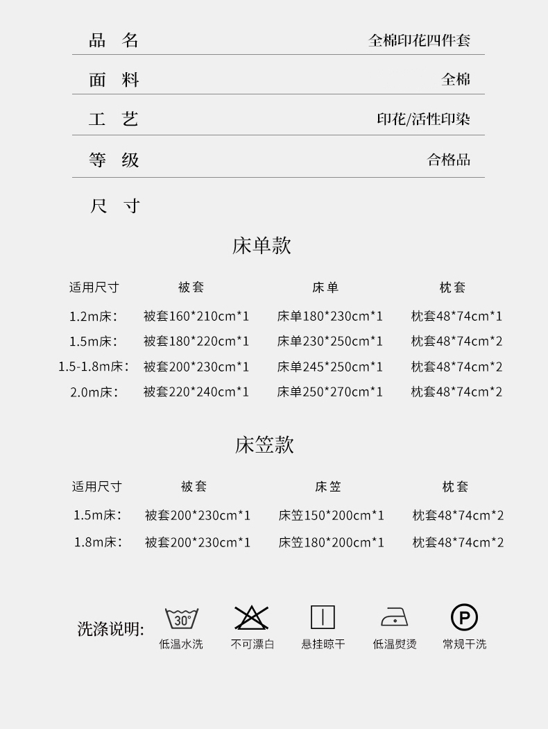1.8m床笠款四件套(被套200×230) | ¥110.00 |