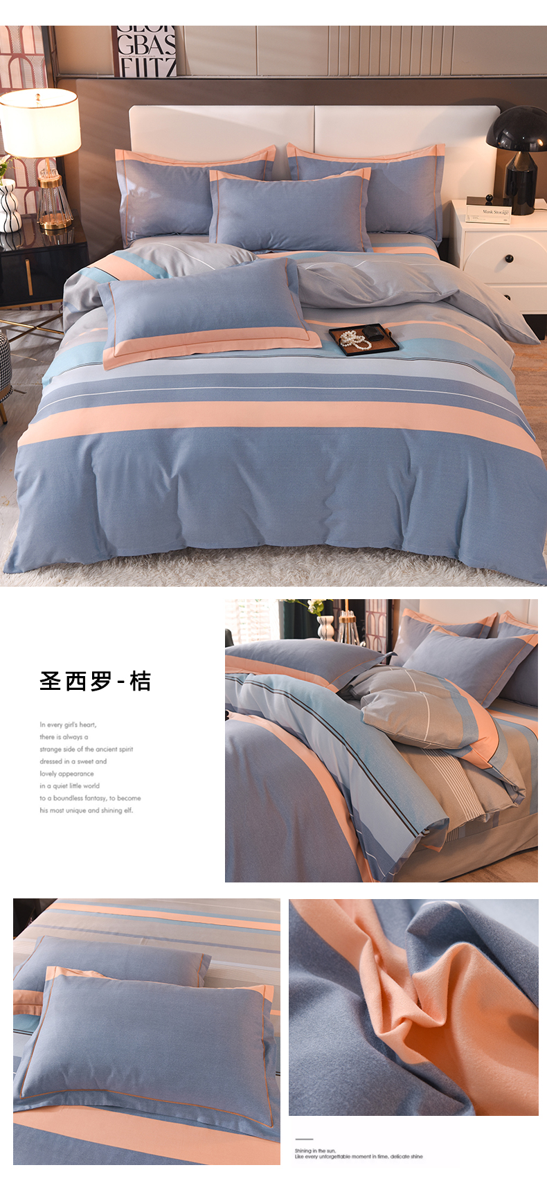 当前位置: 91家纺网 > 商品网购 > 床品套件 > 四件套 > 全棉普通四件套 > 简如 2025新款全棉磨毛印花四件套 圣西罗-桔