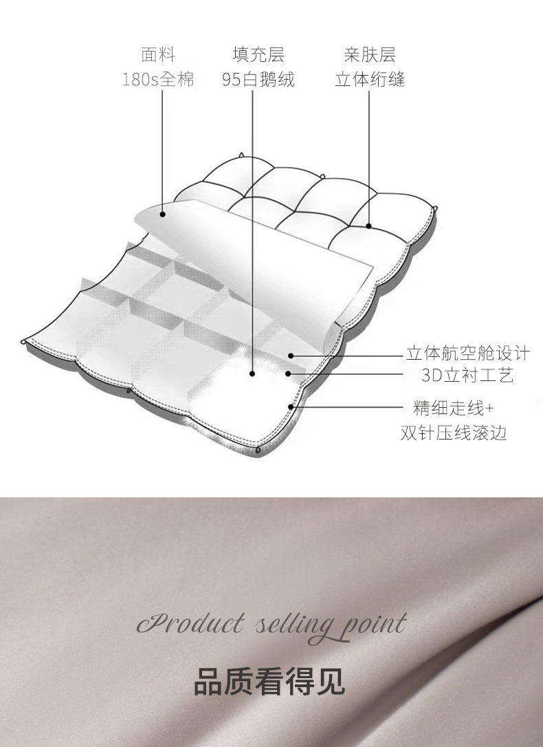 新款95%优质白鹅绒全棉羽绒被子母被,灰色,本白,浅灰,浅驼,香芋