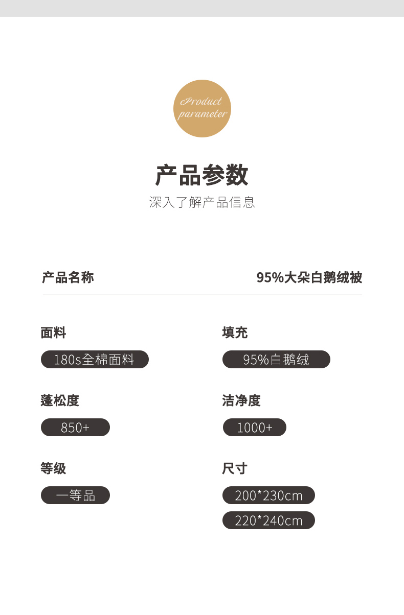 商品名称:(总)岚司羽 新款全棉羽绒被95%优质白鹅绒冬被