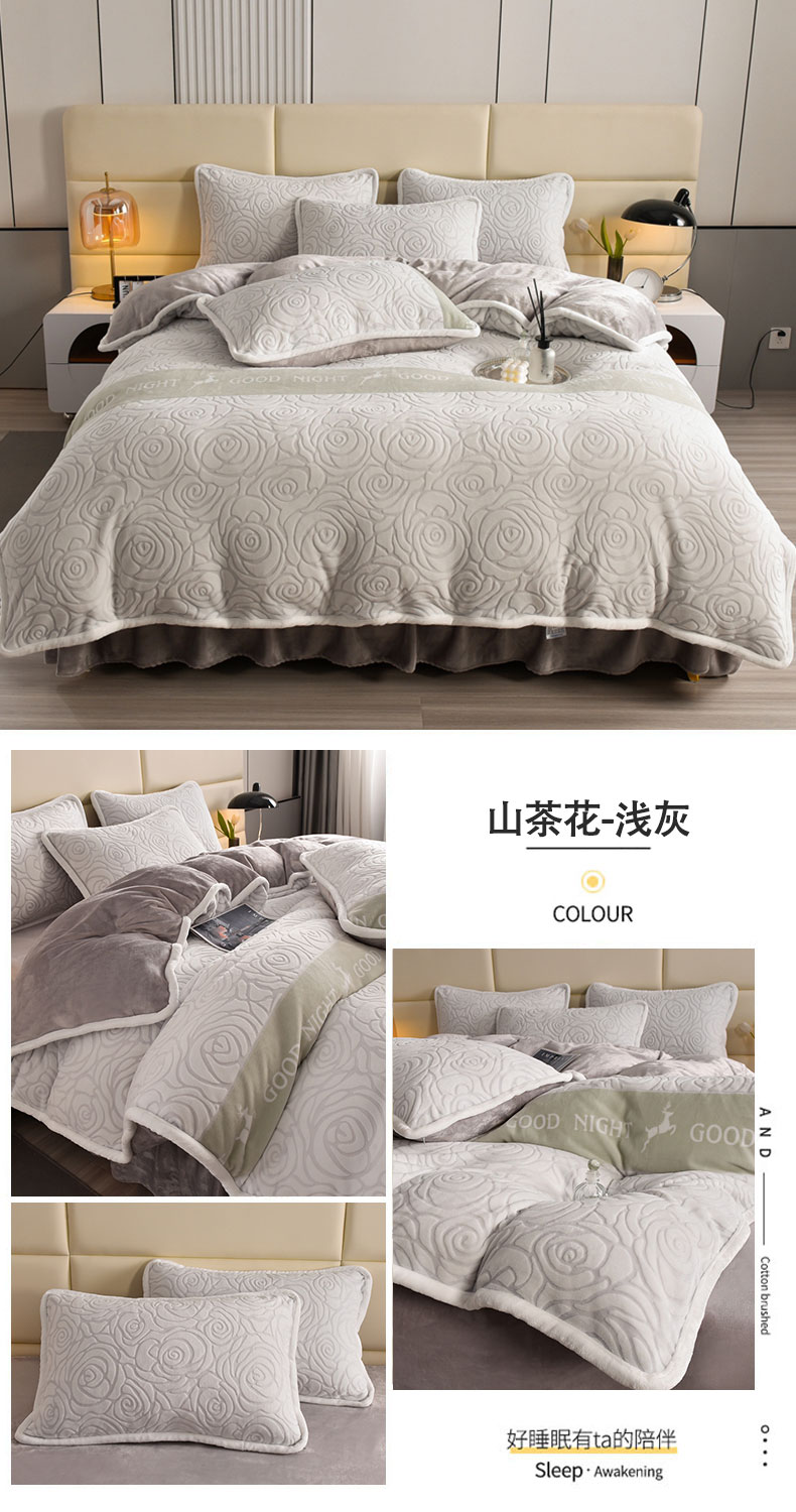 (总)畅畅家纺 2024新款高克重加厚保暖冬季牛奶绒纯色床盖款四件套,豆沙,灰色,天蓝,玉色,中国红