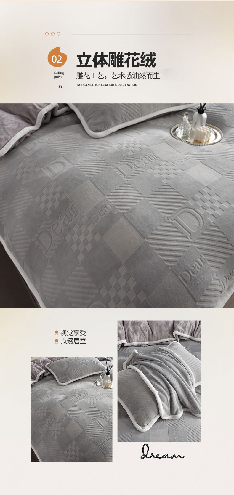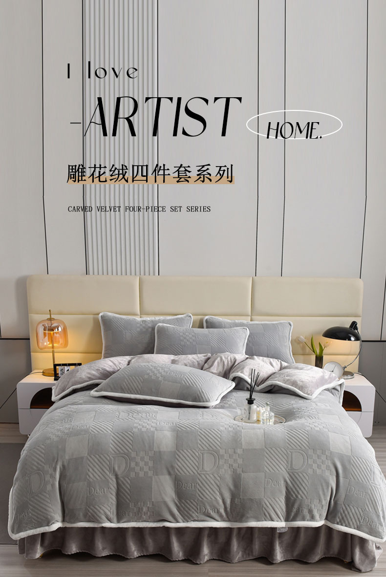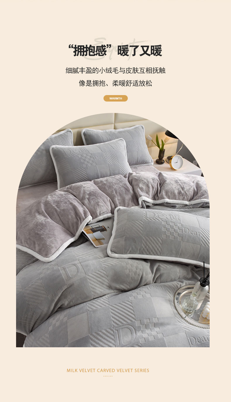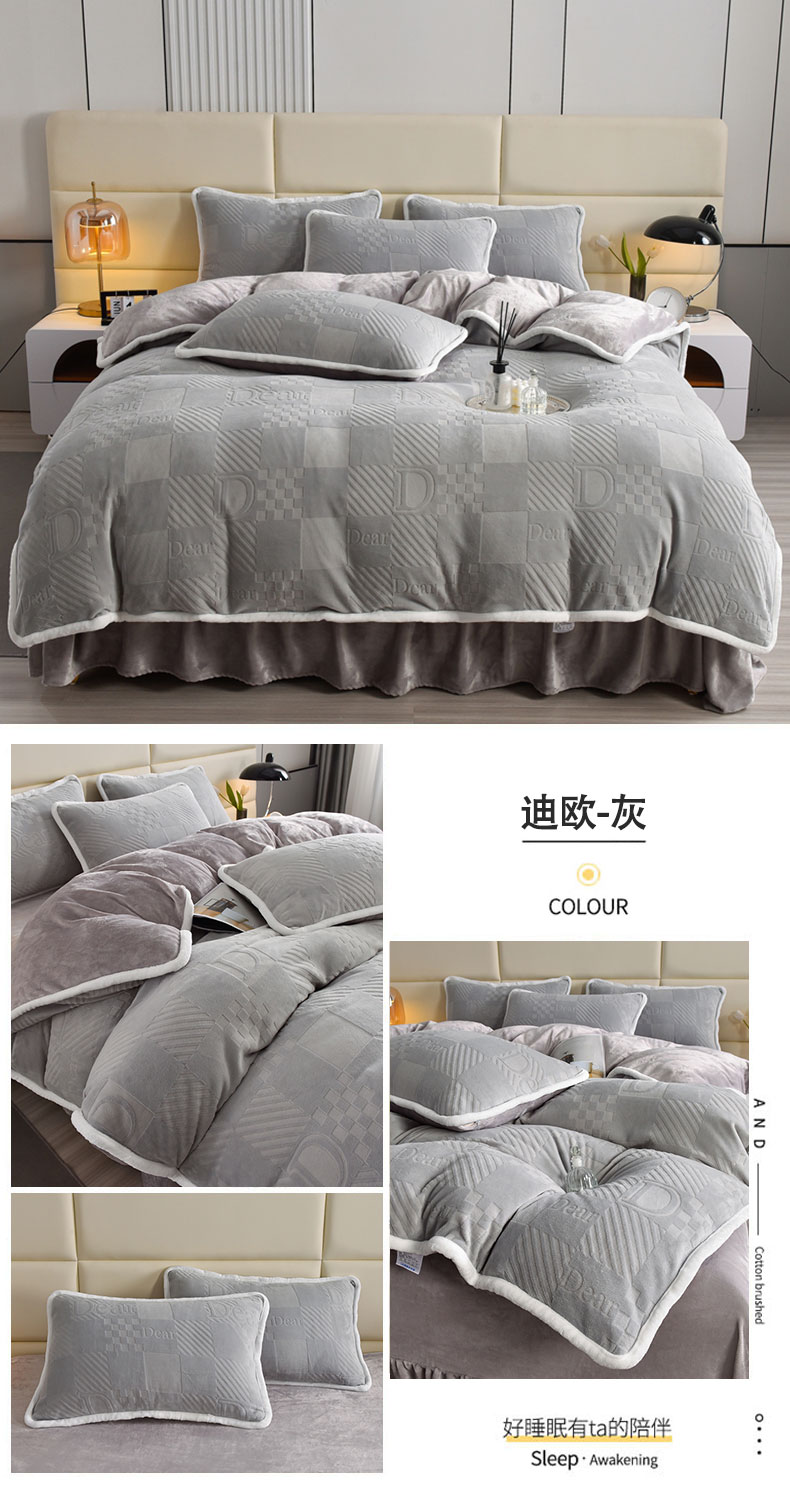 商品名称:畅畅家纺 2023新款A类雕花绒牛奶绒四件套 迪欧-灰